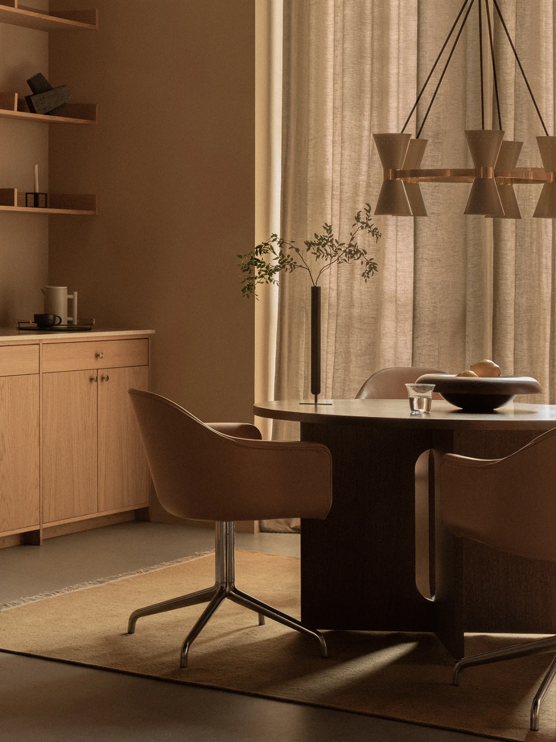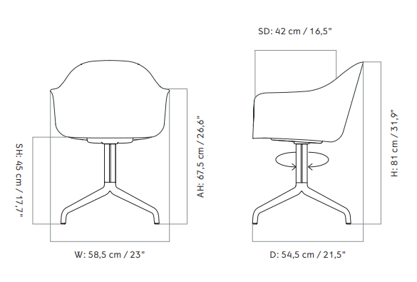 Once you’ve chosen the Harbour Chair shell style that will be cradling and supporting your body, you can now also choose a clover-shaped swivel base so you can spin around as needed – and roll around as wanted, should you opt for caster wheels. The base is available with either swivel or swivel with return options in two finishes – polished aluminum or powder-coated aluminum in black.
