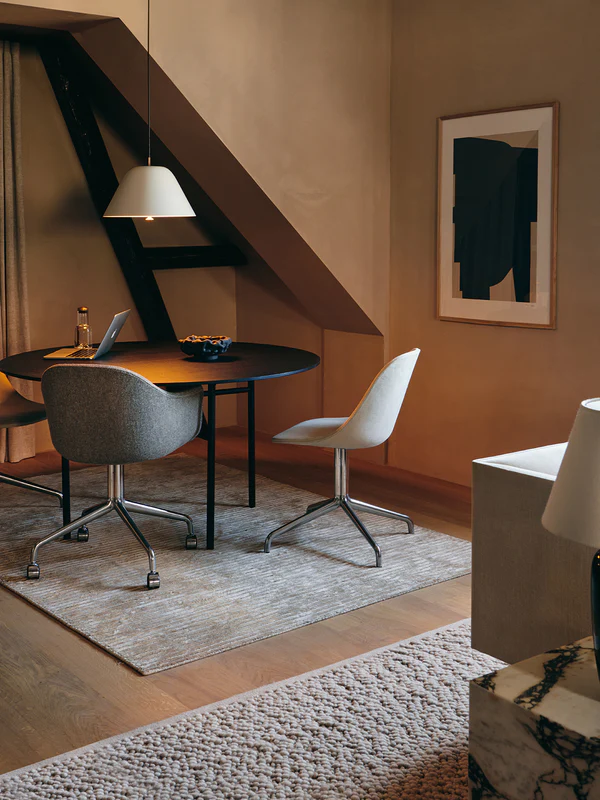 Once you’ve chosen the Harbour Chair shell style that will be cradling and supporting your body, you can now also choose a clover-shaped swivel base so you can spin around as needed – and roll around as wanted, should you opt for caster wheels. The base is available with either swivel or swivel with return options in three finishes – polished aluminum or powder-coated aluminum in black or light grey.
