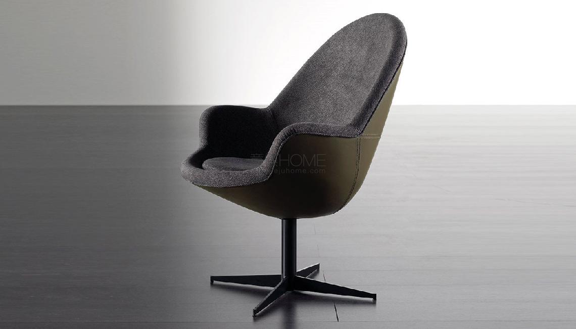 高靠背軟包小扶手椅,面料不可拆卸,黑色啞光可旋轉基座。-高靠背軟包小扶手椅,面料不可拆卸,著色橡木材質底座。