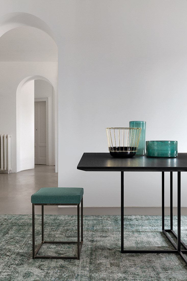 金屬底座的餐桌。 有不同型號和尺寸的臺面