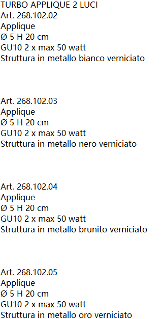 -TURBO-TURBO APPLIQUE 2 LUCI 壁燈