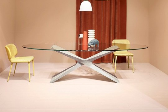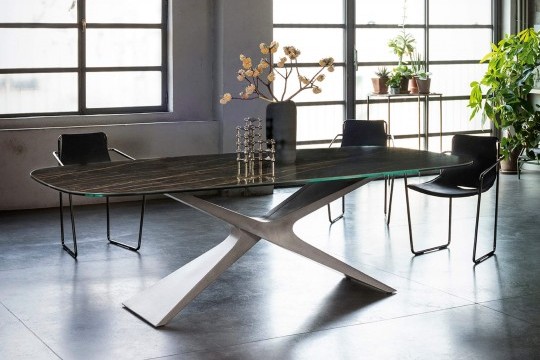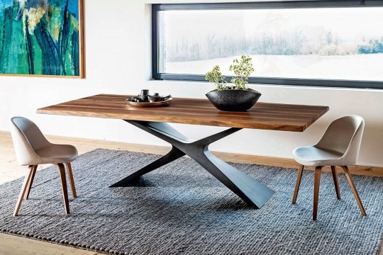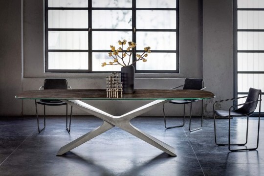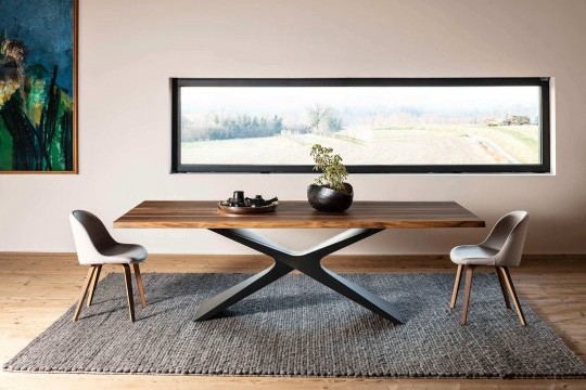 available in a two-color version. Glass, crystalceramic or solid wood top.