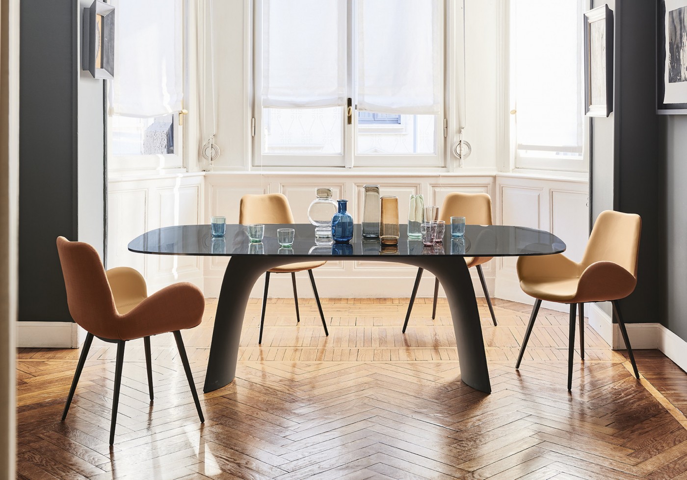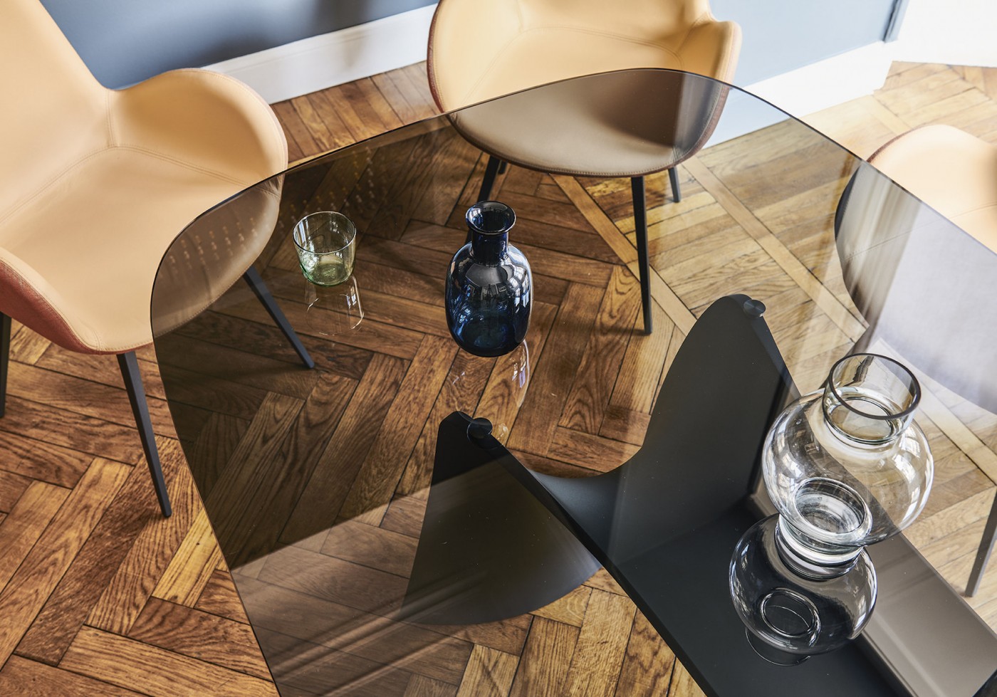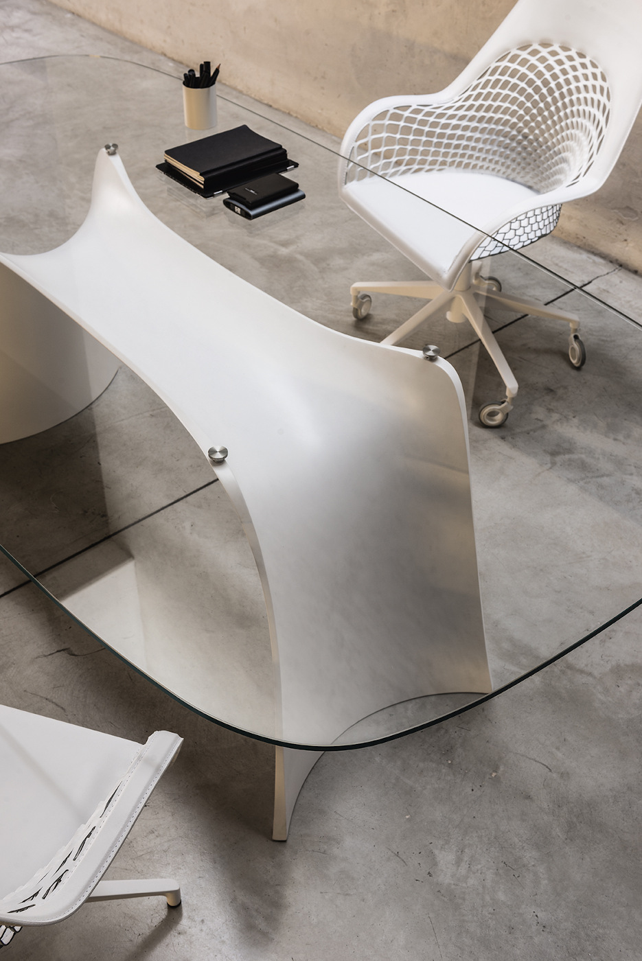 Moonlight fixed table with frame in Baydur? and crystal or cristalceramic