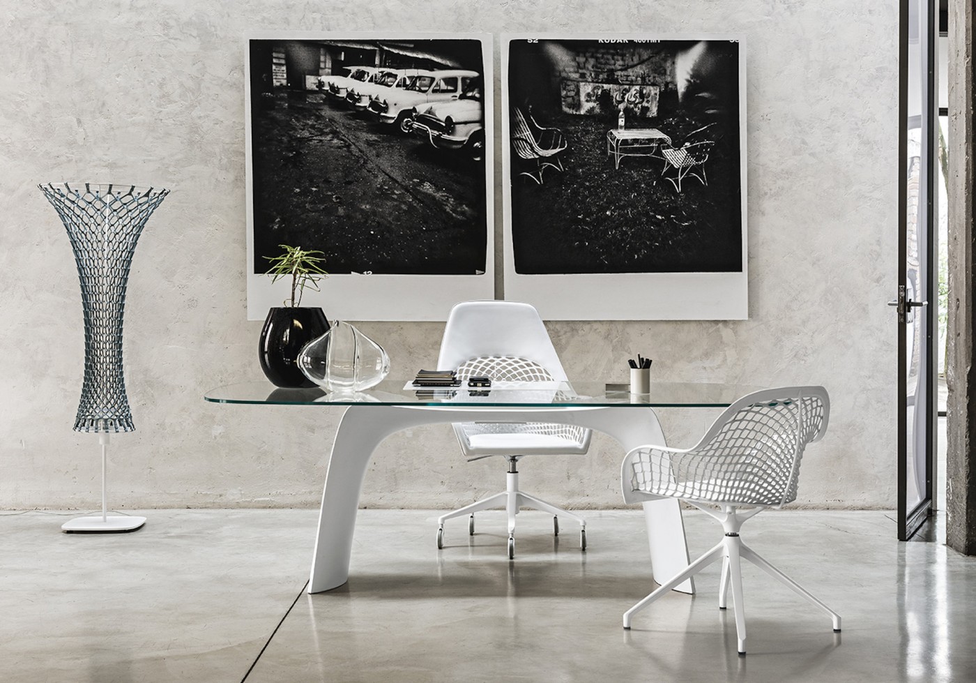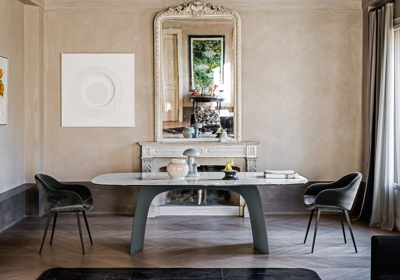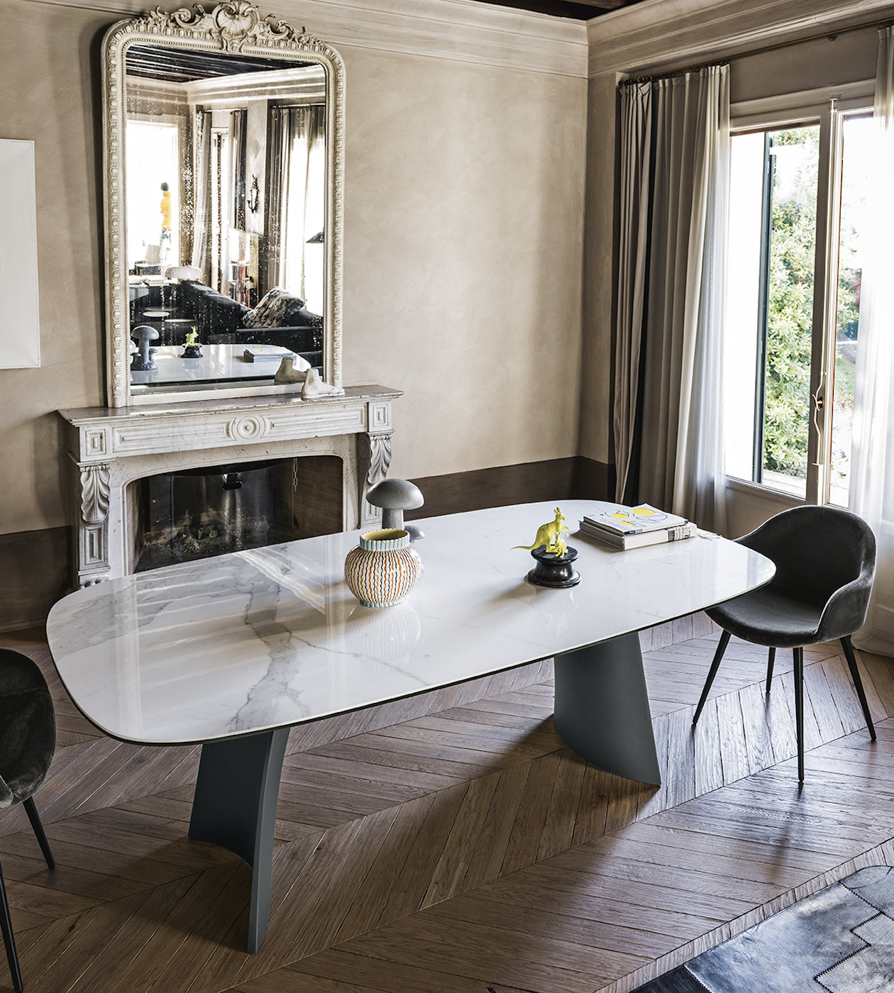 Moonlight fixed table with frame in Baydur? and crystal or cristalceramic