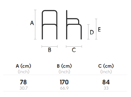 Two-seat sofa with painted metal legs. Seat and backrest upholstered in fabric.