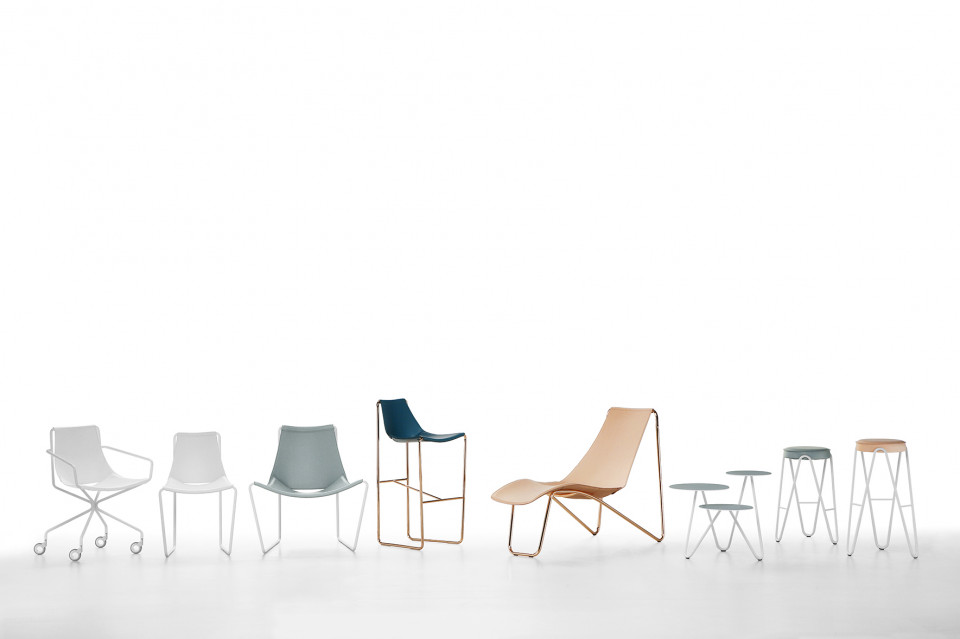 Apelle collection is composed of different versions: chair, armchair, lounge, chaise longue and stool. To complete the collection: desk, sideboard, bookcase, coffee tables and coat rack all available in different finishings.