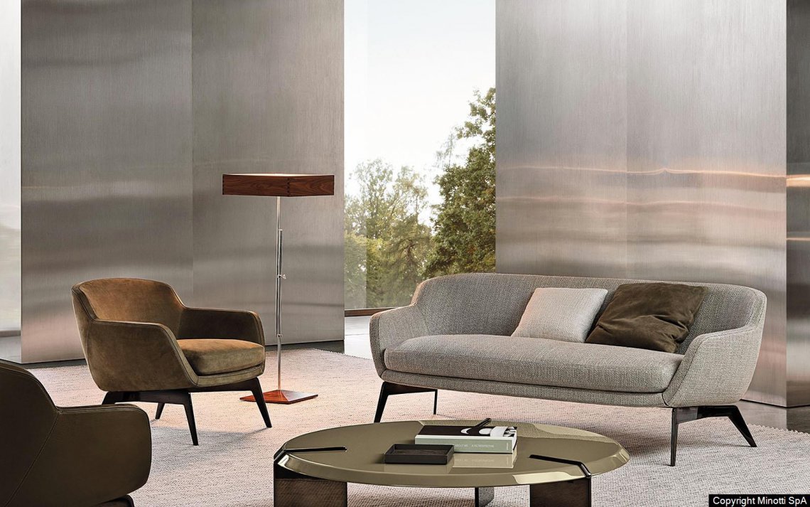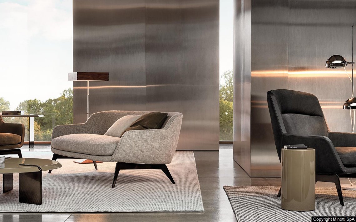 The distinctive characteristic and inspiration behind the Belt family, designed in the all-fabric or leather versions, is the idea of a belt that draws the profile of the body, encircling it, then breaking off and fastening on the front of the seat.