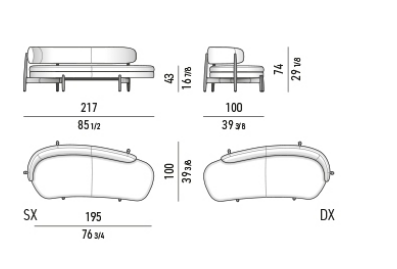 The frame and cushions have fully removable covers in both fabric and leather versions.