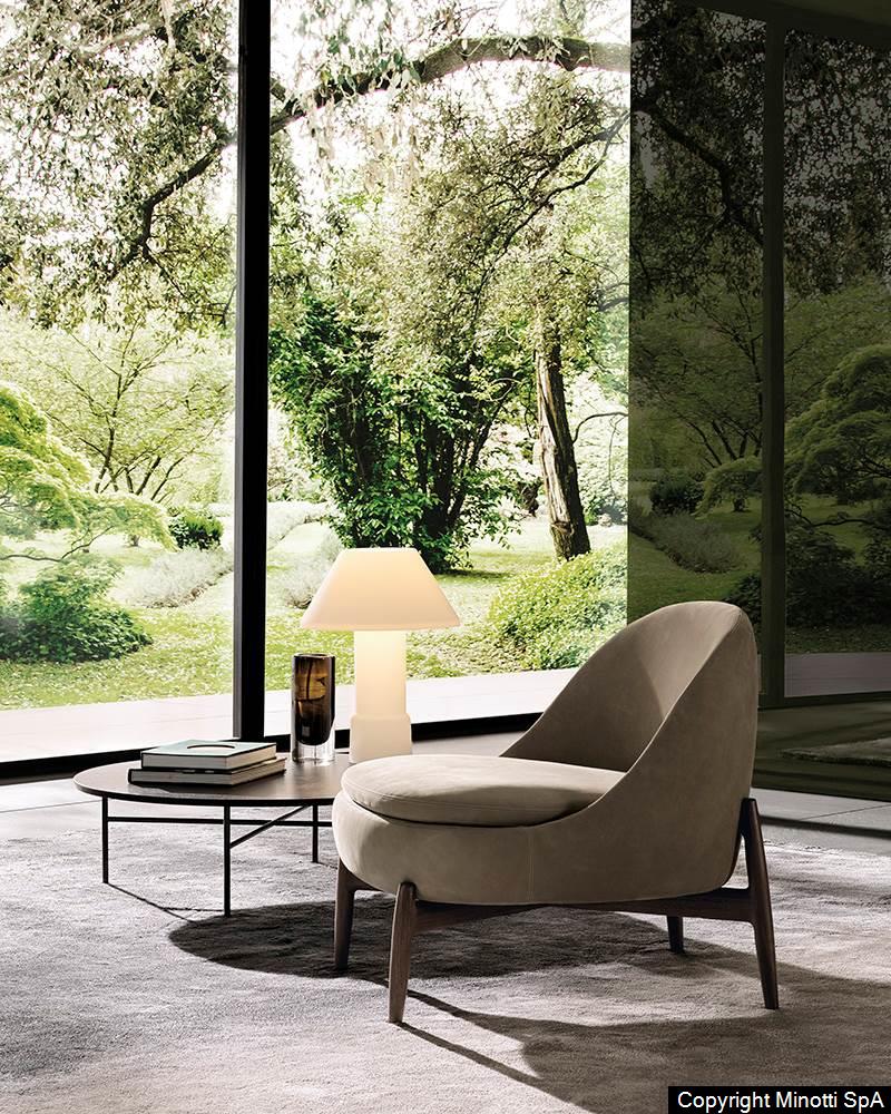 The compact and well-proportioned silhouette of both the seats and the small sofa, opens up to a new way of using the dining space: as a living room within the living room, a hybrid situation, such as when dinner is served on a large table, while guests meet and socialise round a lounge table.