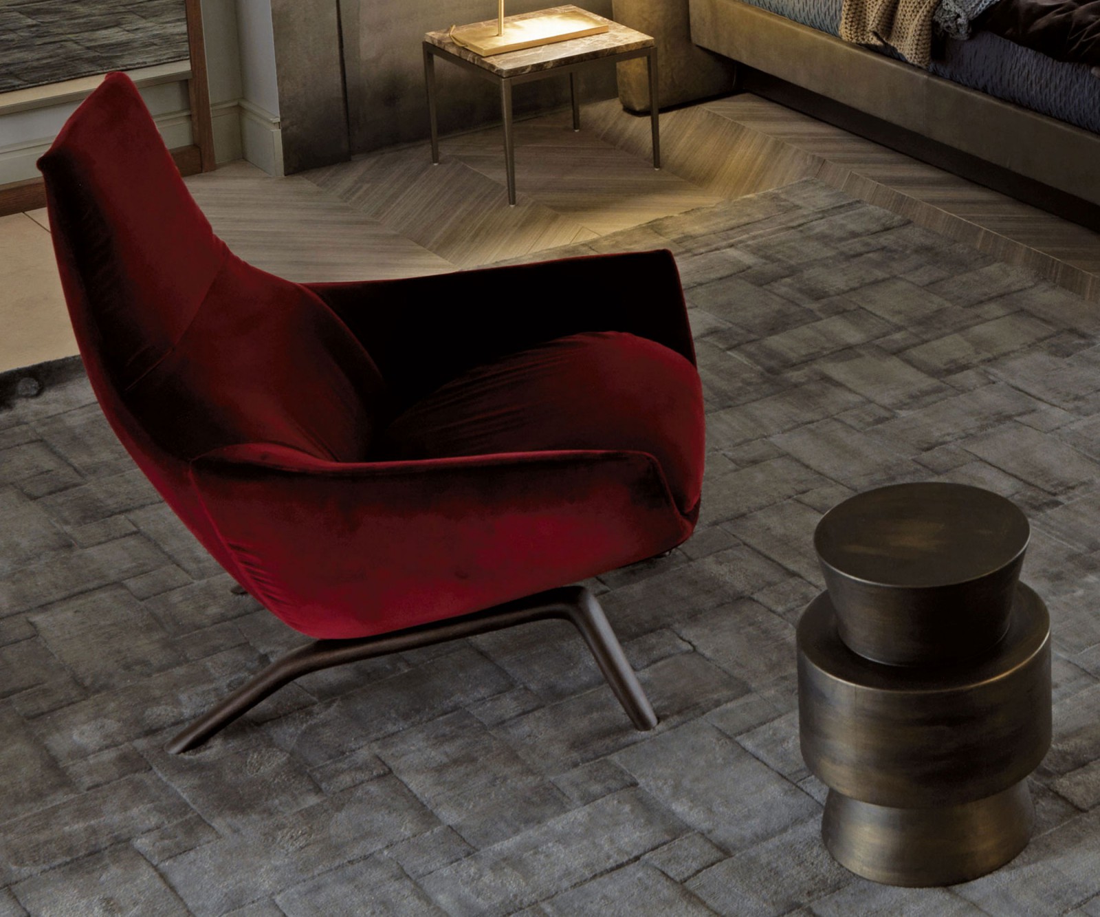 嫻熟細密的手工針步無瑕整個扶手椅的組合,成就超級柔軟之感。有一個可拆卸面罩的擱腳凳備