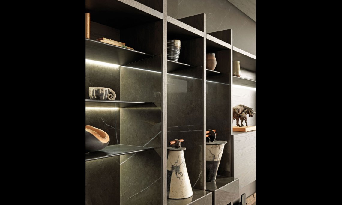 4米高度傲然卓立于空間之上,不限于2米寬度的定制化要求,將區(qū)域大幅度延伸,呈現(xiàn)開放的狀態(tài)。不對稱的分隔空間區(qū)域,視覺上帶出非常規(guī)結(jié)構(gòu)的輕盈感,塑造一個(gè)獨(dú)一無二的視覺享受,組成萬千變化的大片世界。
