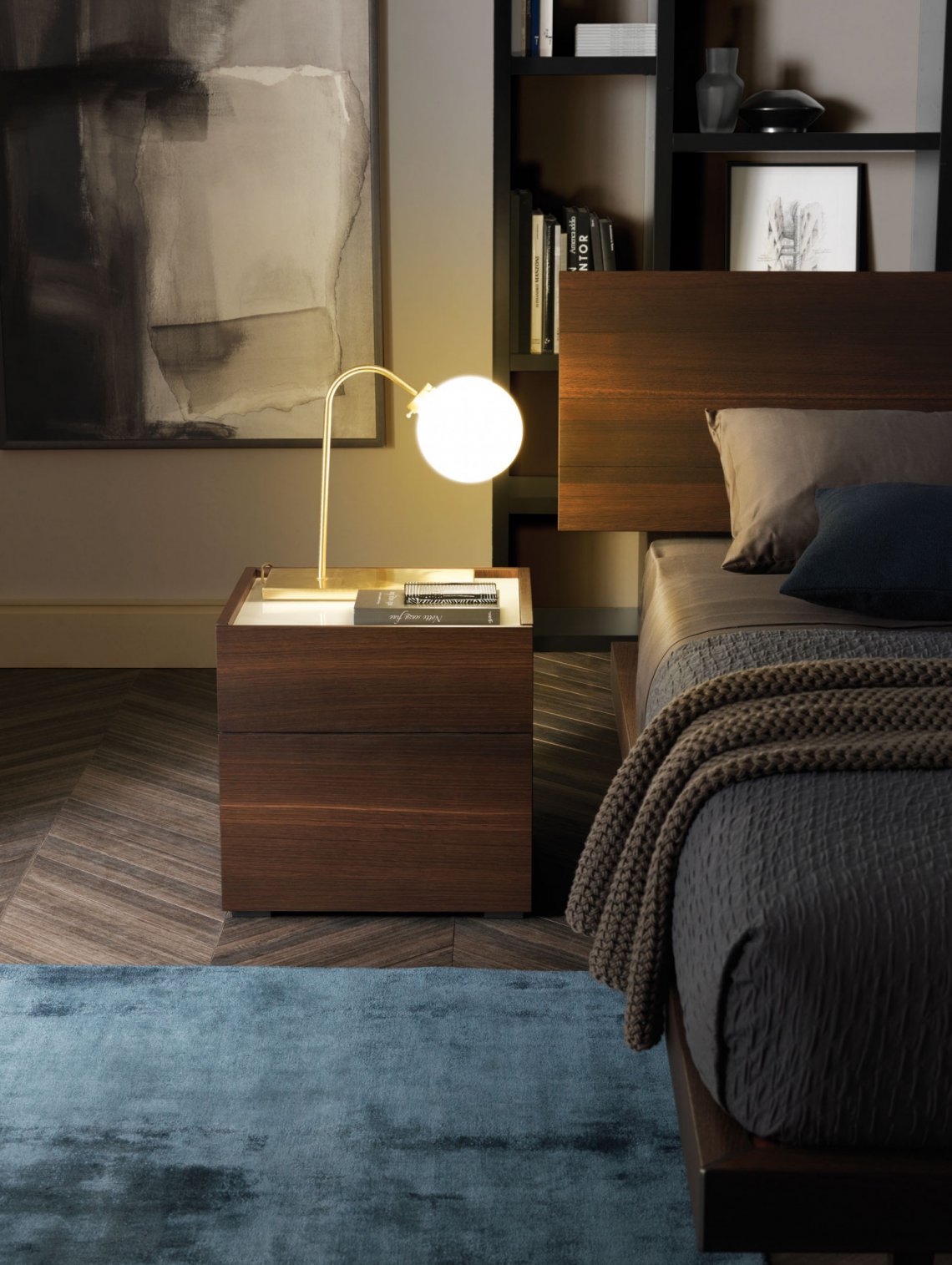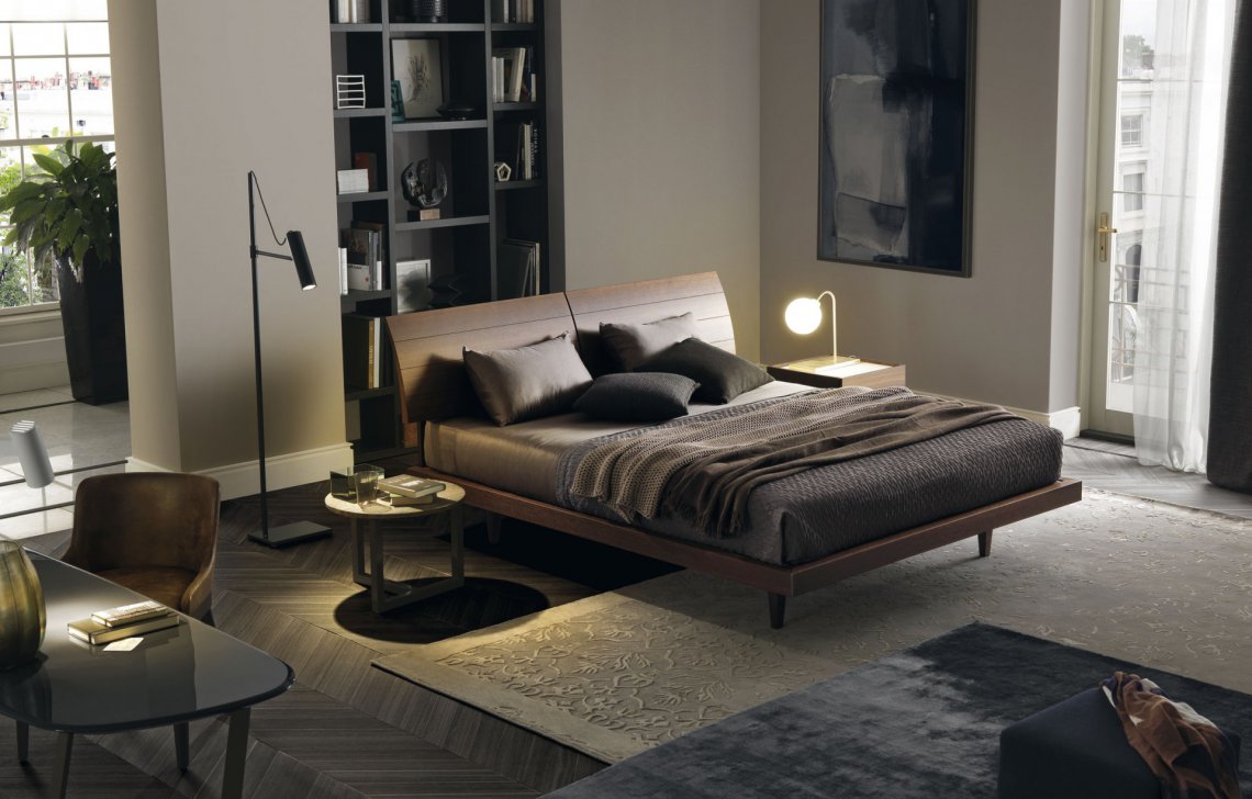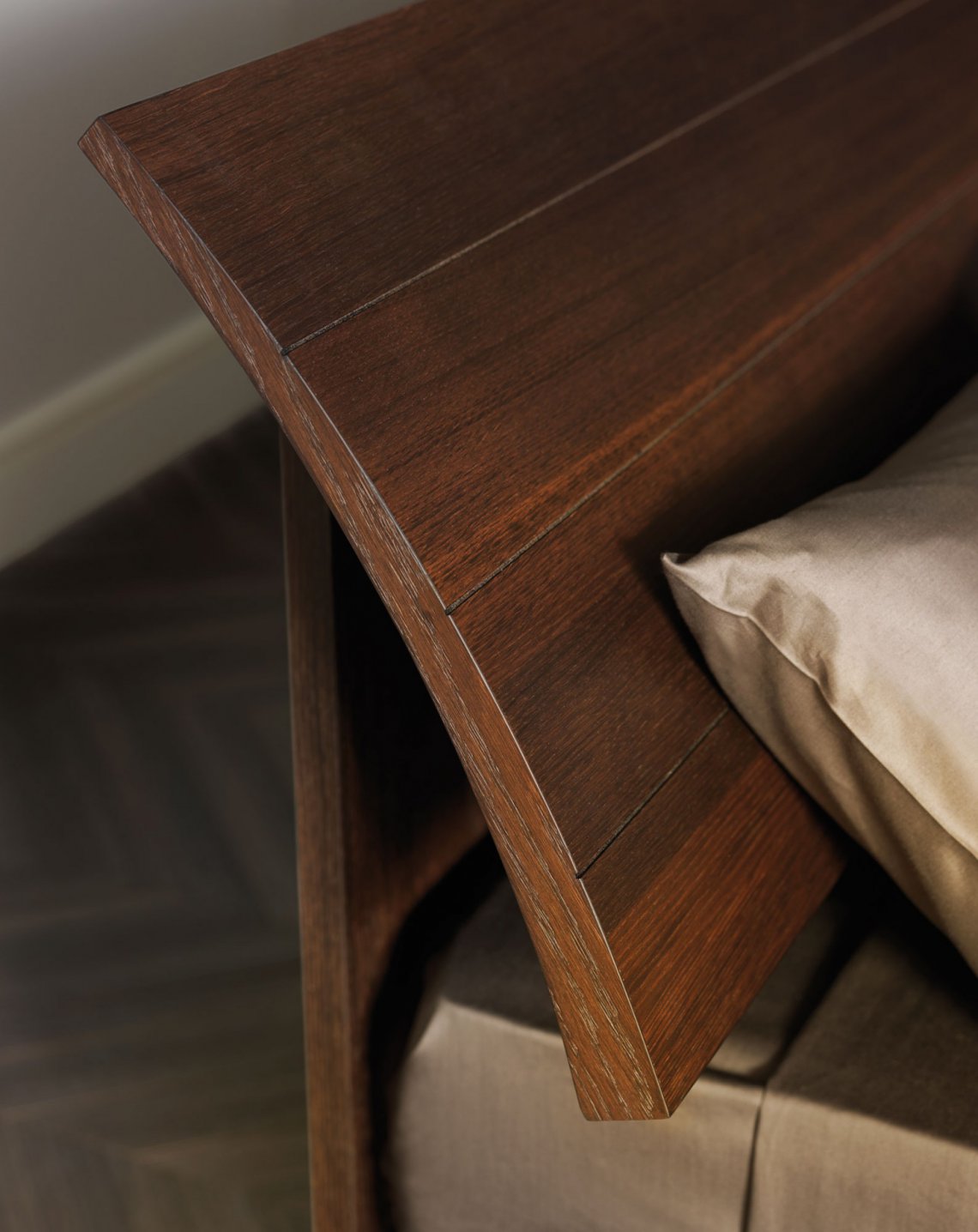 床頭板由兩個獨立可調節元素組成,整體創造出一個曲線面,使睡眠區成為一個時尚之所。可提供有撐腳或自帶存儲功能兩種類型。