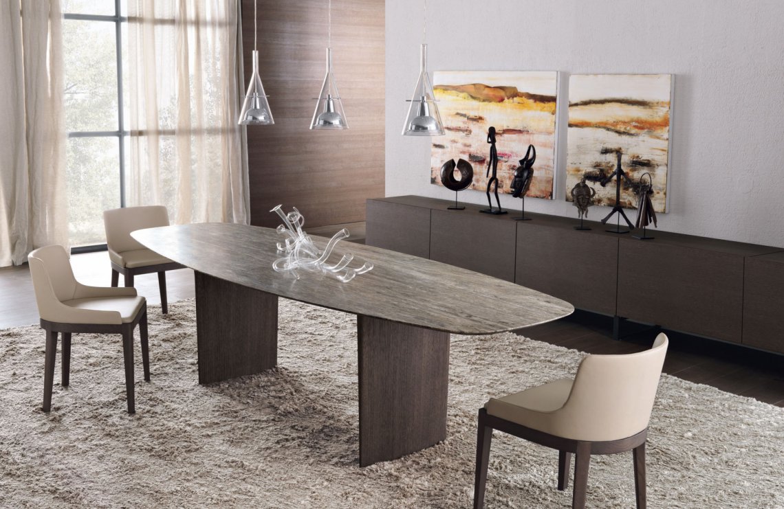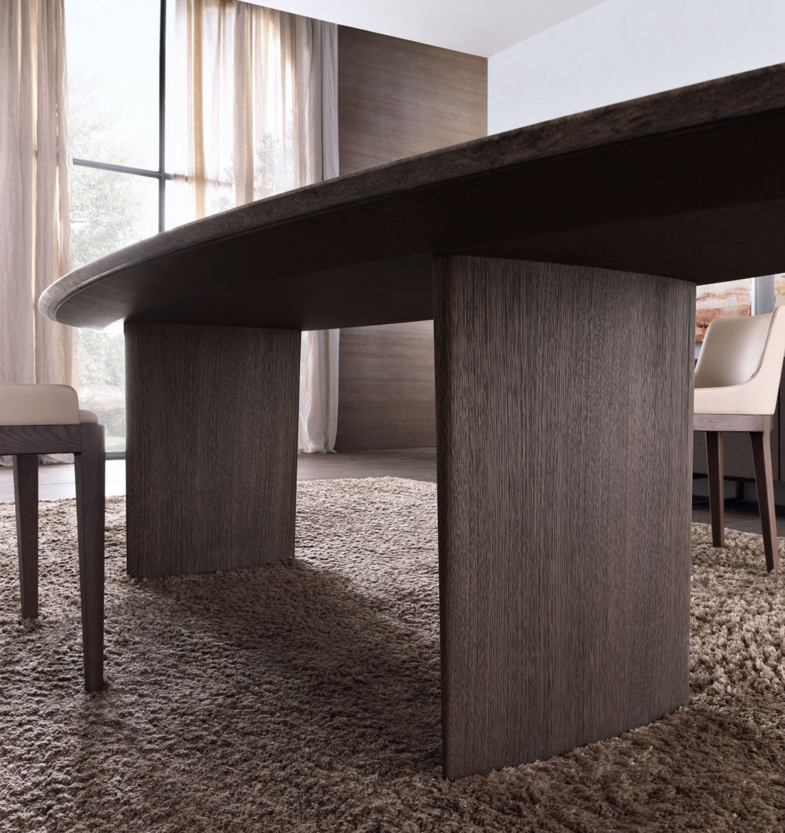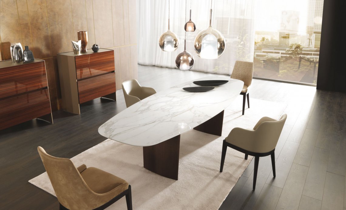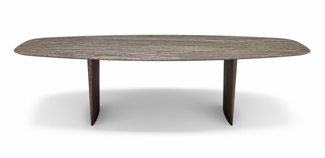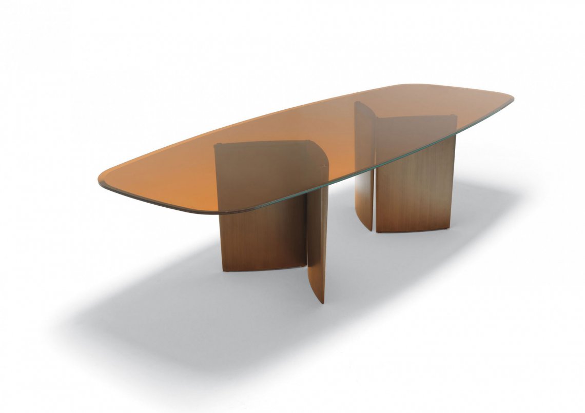 一張桌子,組合不同材料,同時也展示了一種當代科技。桌面的細薄修邊可減輕產品厚度的視覺感知,使其輕巧懸掛。撐腳部分讓人聯想起飛機的機翼,即是這個產品的靈感來源。