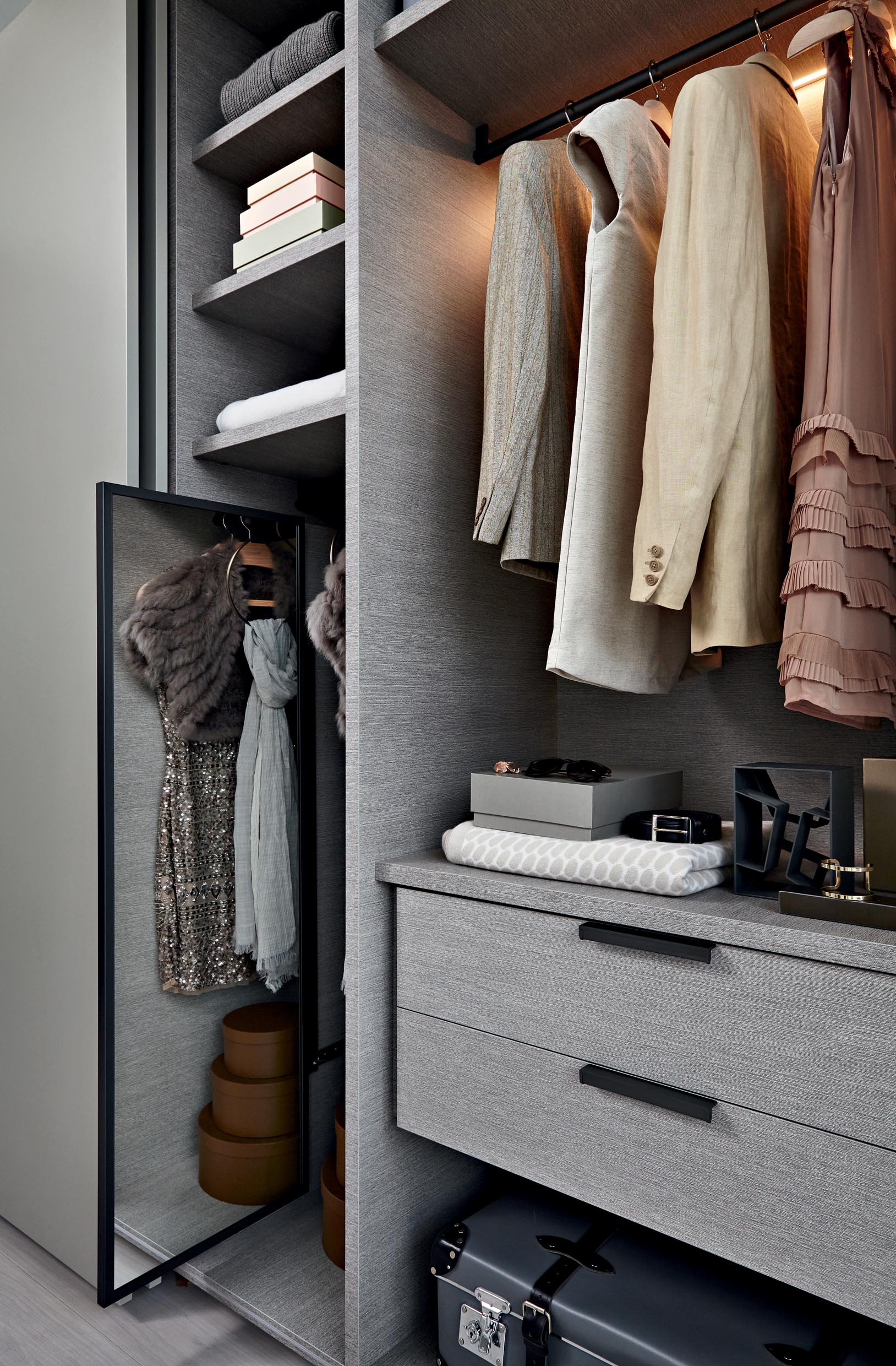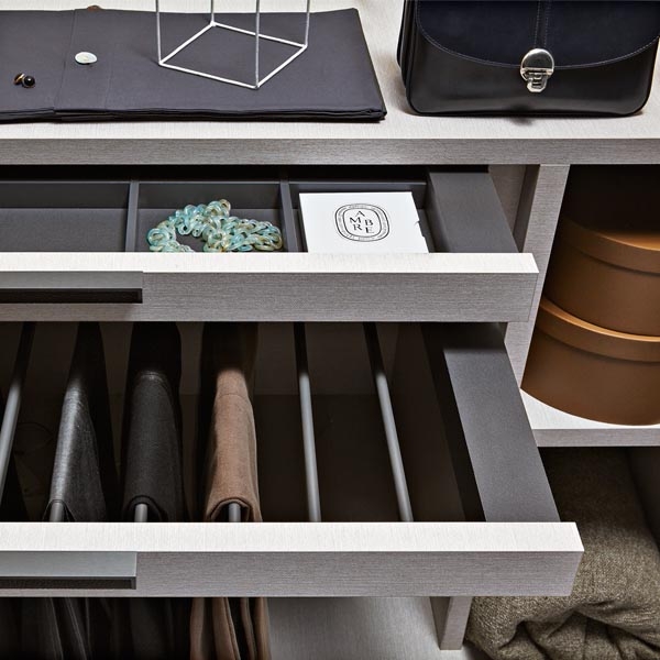 技術(shù)先進的解決方案,例如嵌入式滑動機構(gòu),其特征在于具有磁性減震器系統(tǒng),可在使用時消除噪音。該系統(tǒng)需要較小的力來打開或關(guān)閉門,從而提高了滑動流動性。精致的可拉式襯衫架,可拉式抽屜和托盤,鞋架,領(lǐng)帶架,“ eco skin”珠寶盒等配件以及新的led照明系統(tǒng)只是其中的一些新穎創(chuàng)意。