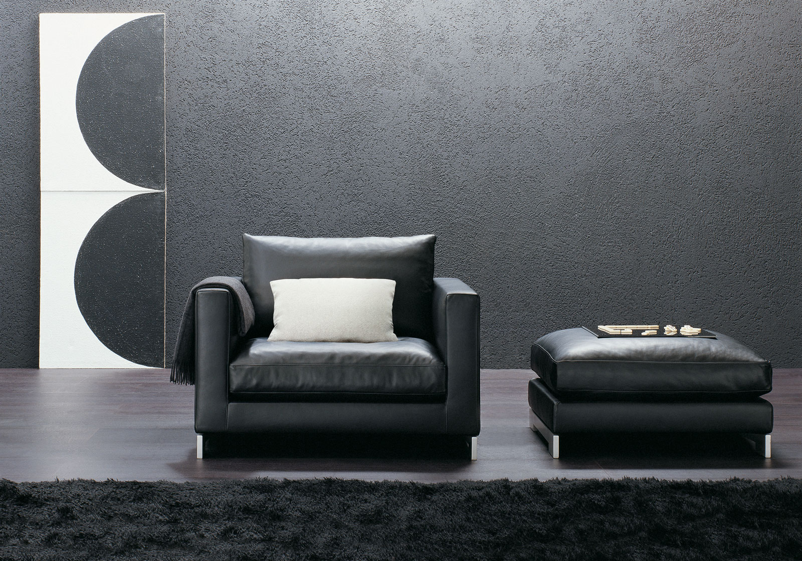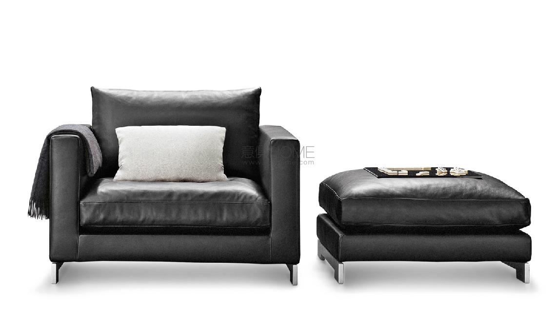 包括腳榻和扶手椅的Reversi沙發(fā)系列風(fēng)格上回到Art Deco的裝飾藝術(shù)風(fēng)格:外形莊重,寬大而舒適的體量。沙發(fā)腳電鍍處理。