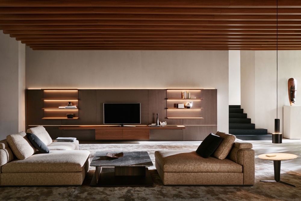 1.The particular feature of modular systems is the ease with which a few basic elements can be combined to provide valid and seamless furnishing solutions. Grid, designed by Vincent Van Duysen, fully satisfies this criterion of infinite modularity. Grid is a new research chapter in what are known today as modular wall-systems. Research into the evolution of domestic space, also thanks to the presence of electronic devices that extend the perception of space.