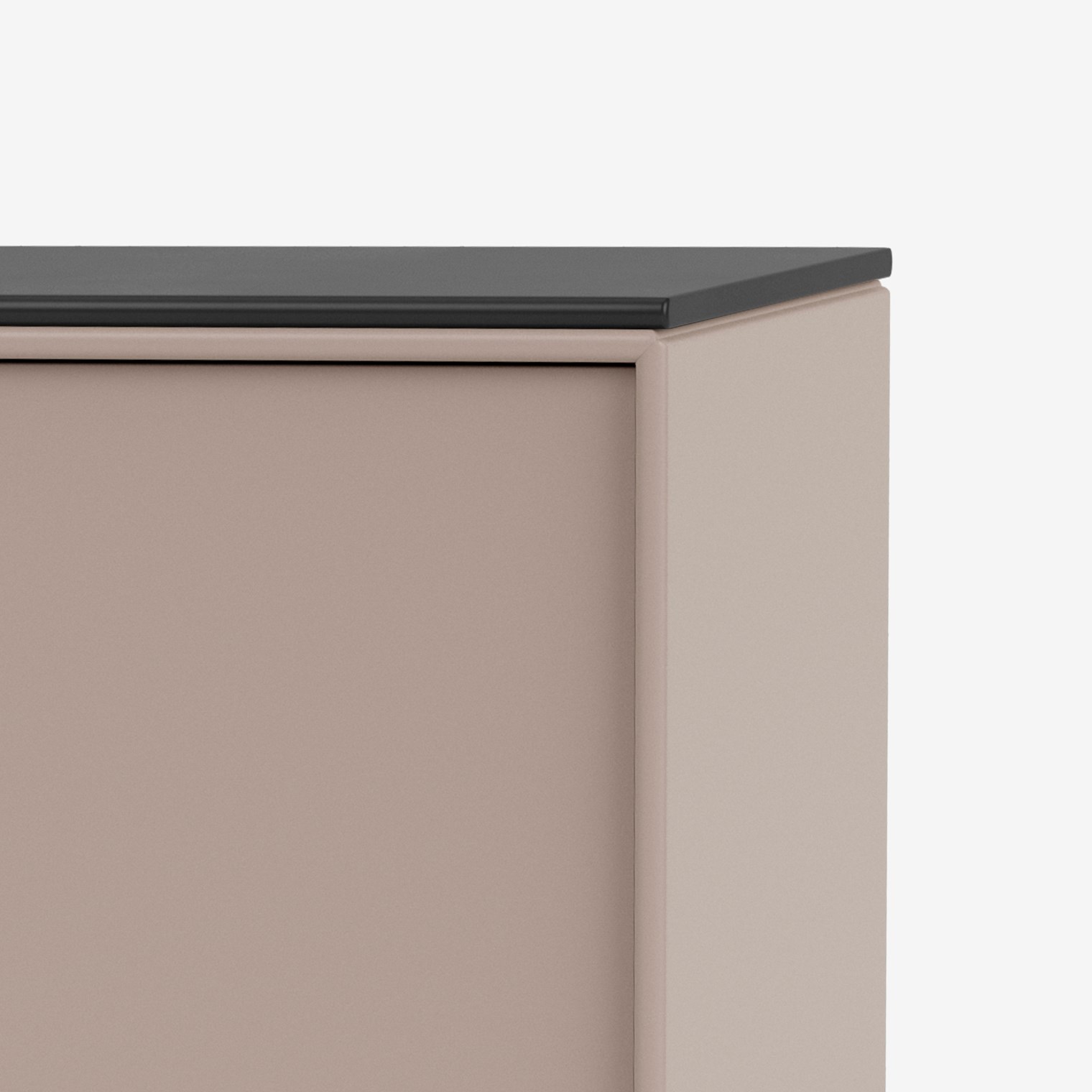 這款適用于 Montana 系統(tǒng)的矩形頂板寬度為 174.9 厘米,深度有 30、38 和 46 厘米可供選擇。頂板由 12 毫米 MDF 水性漆制成,具有圓形前邊緣和后邊緣以及直端邊緣,以便兩個(gè)頂板對(duì)齊。當(dāng)頂板必須覆蓋多個(gè)單元時(shí),每單元額外計(jì)算 1 毫米。蒙大拿州 40 種水性漆顏色可供選擇。在模塊和頂部面板上組合兩種不同的顏色以獲得更大膽的外觀,或者通過將模塊和頂部面板組合為相同顏色來(lái)創(chuàng)建更平靜的外觀。