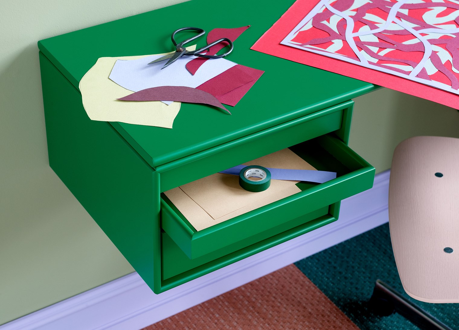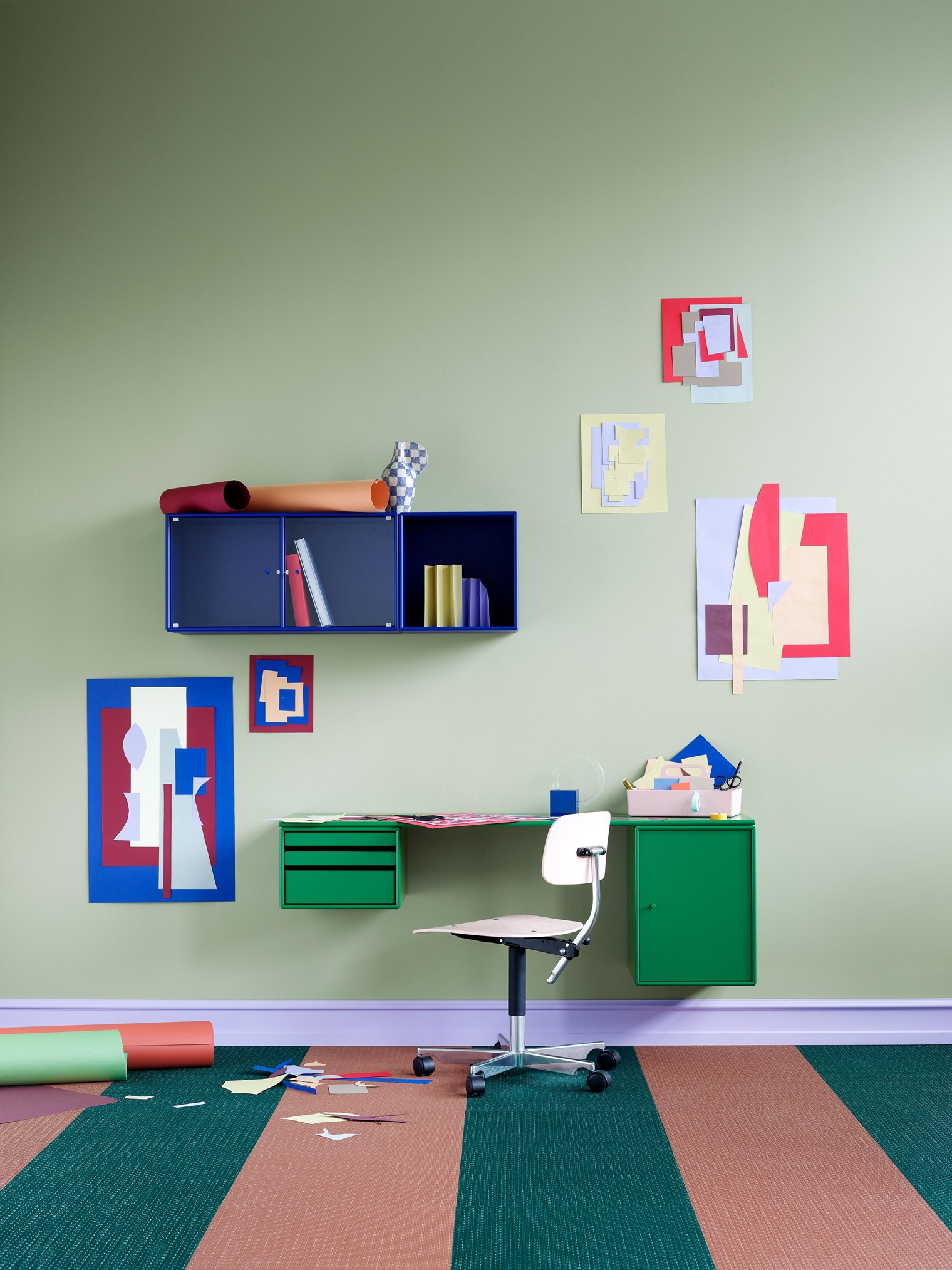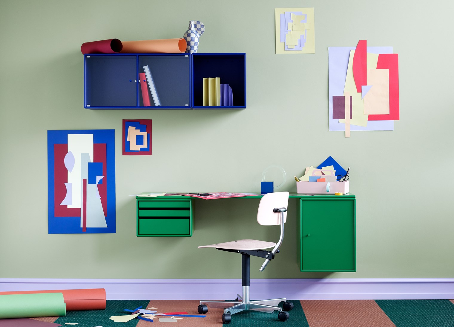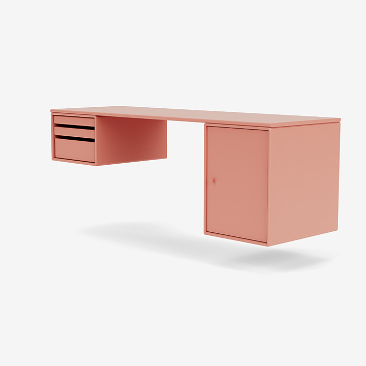 WORKSHOP 是一款適合家庭辦公室的長方形辦公桌,頂部面板下方兩側(cè)的兩個存儲模塊之間有腿部空間。WORKSHOP 的一側(cè)有托盤模塊,可以從模塊上完全拆除。另一側(cè)是一個較小的柜子,用于存放書籍或辦公用品。