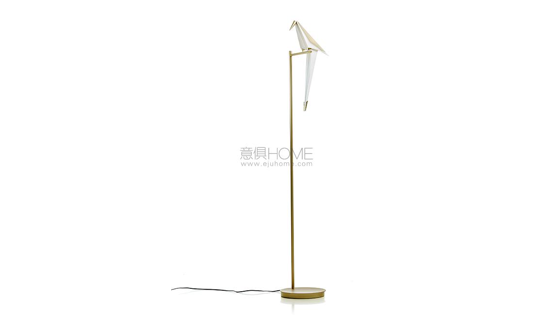 Look up, into the soft light, follow the fluttering sound and sparks of movement. A bird is gracefully balanced on a tall metal perch, beautiful and proud, a swinging glimmer of warm light... yet you are inside, after daylight has faded, under the spell of the Perch Light Floor Lamp!