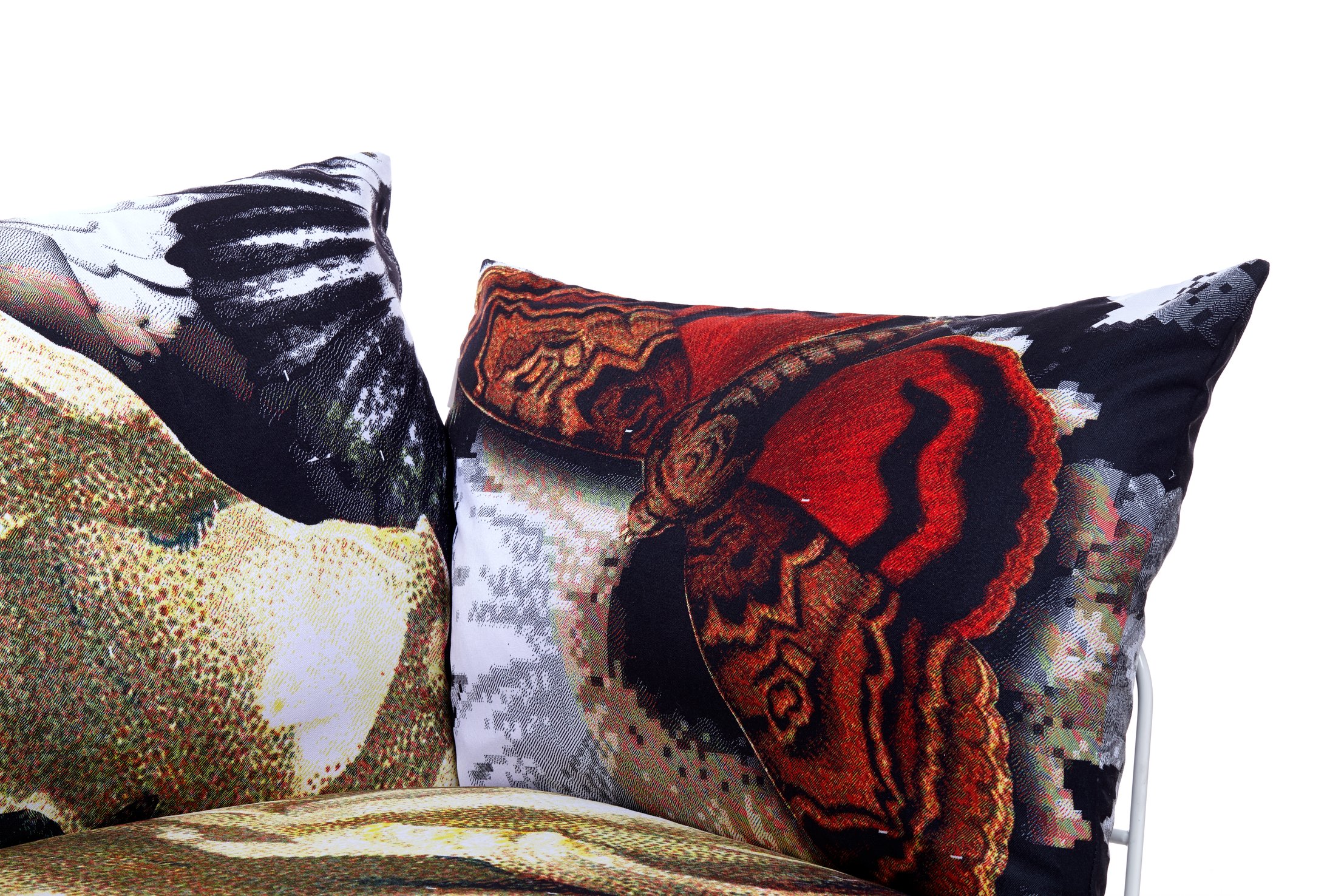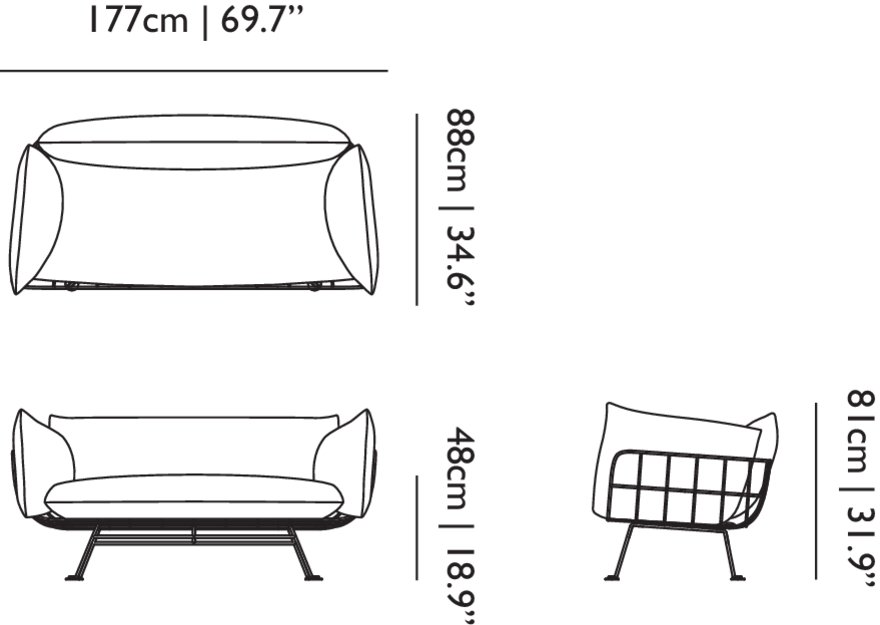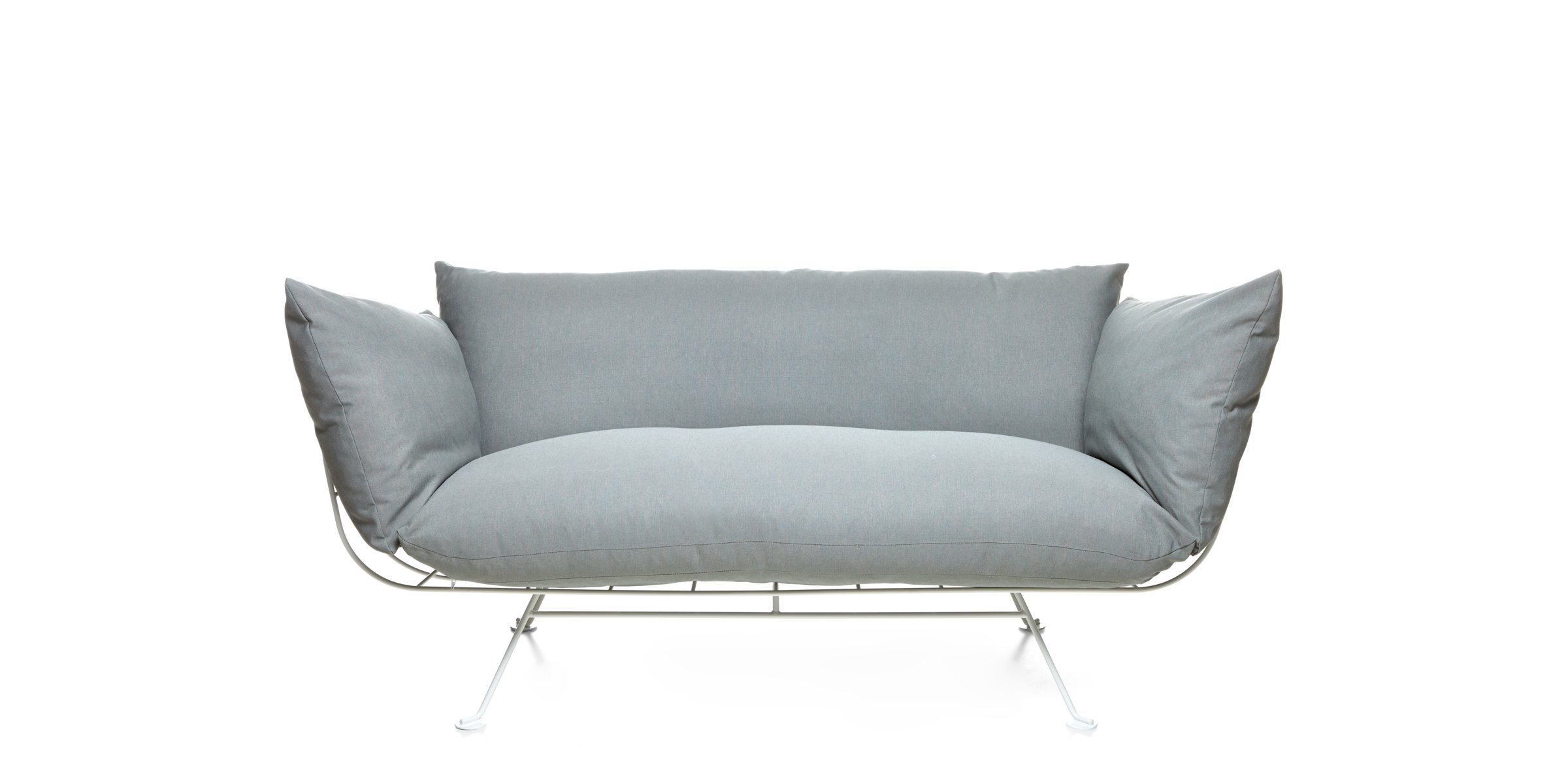 The Nest collection’s linear, clear metal structure lifts the plumpest and softest cushions from the floor. It is a comfy elevated nest for one or more people. For the lovers of fresh, colourful prints Marcel Wanders has developed two signature textiles with a heart of sunshine: ‘One minute’, with its instant splashes of blue skies, and ‘Flower bits’, with a bloom of flowers and butterflies. Since this chair and sofa are all about their cushions, they are also available other prints and colours so that everyone can accessorize their personal nest with the look that most represents them.