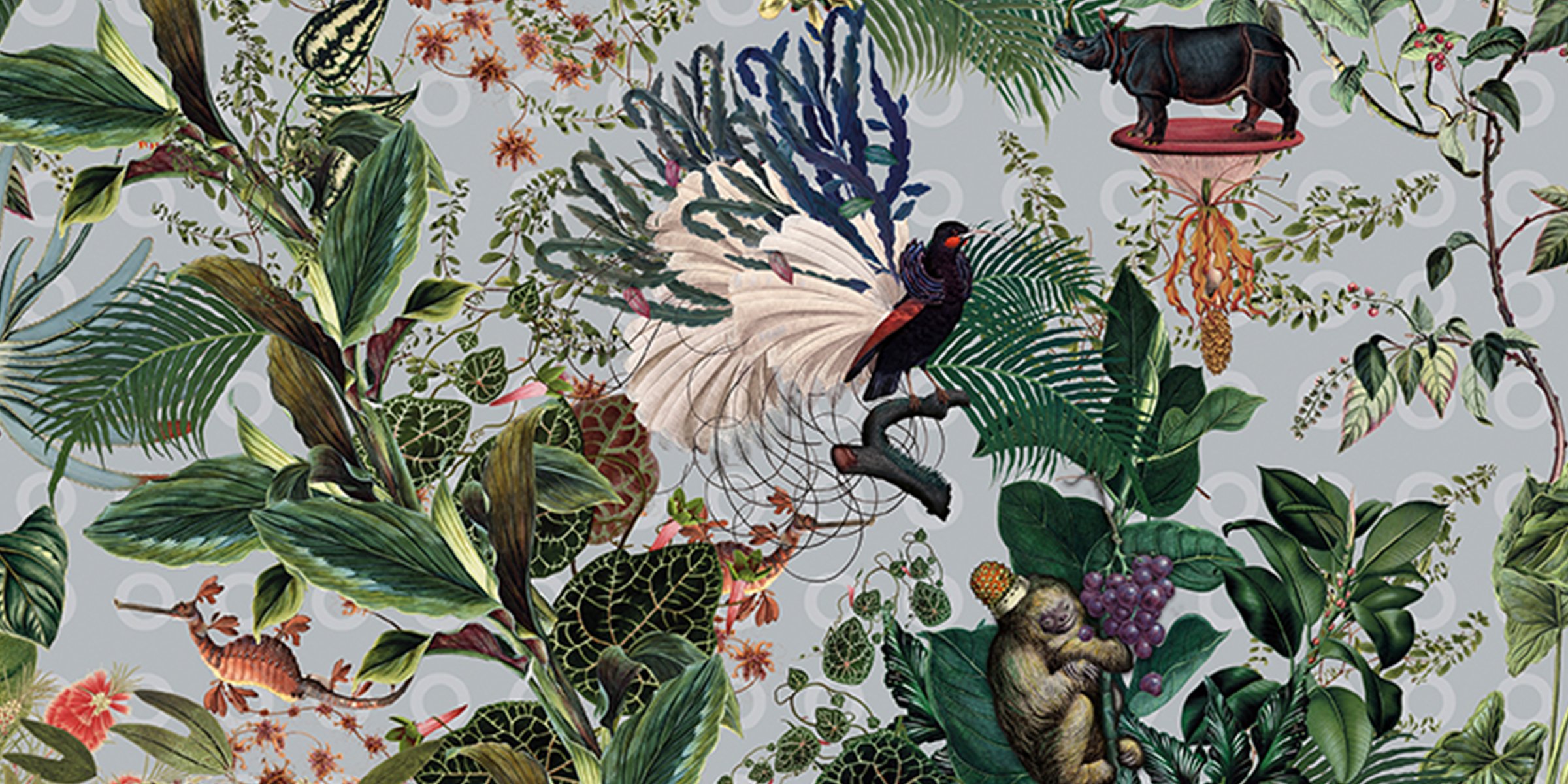 A fantastic fauna print ? digitally printed on soft touch textile with a non-woven backing ? in which each of the 10 extinct animals is mysteriously hidden.