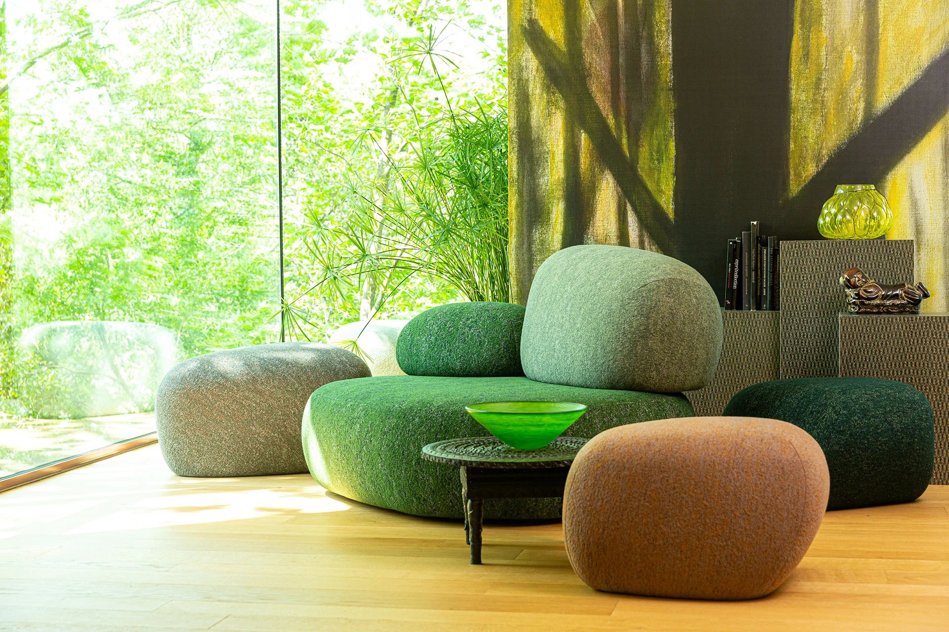 “Il nostro nuovo sistema per Moroso si ispira alle forme trovate in natura. Da bambini nella nostra nativa Svezia, il nostro parco giochi era la foresta e immaginavamo rocce, muschio e alberi caduti come mobili e luoghi in cui il corpo può riposare. Per questa collezione di posti a sedere, abbiamo scansionato in 3D le rocce che abbiamo visto durante le nostre numerose passeggiate nella foresta e abbiamo composto queste forme organiche in mobili”, condividono le designer.