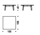 Piano e base in rovere massello essiccato con procedimento naturale. Le gambe dei tavoli sono sempre verniciate nere.