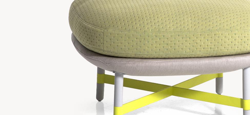 Un tessuto nuovo per un nuovo modo di sedersi. La nuova filosofia dello stare seduti probabilmente si avvicinerà di più al concetto dello stare stesi. L’altezza della seduta è più bassa del normale, e il design aperto dell’oggetto d’arredo permette una maggiore libertà di movimento. Le dimensioni spaziali, gli schemi sovrapposti e l’utilizzo del colore sono considerazioni centrali nella progettazione del tessuto. I primi abbozzi e modelli in scala di Scholten & Baijings sono costituiti da daybed morbidi di forma rettangolare che si prestano a svariati utilizzi: sedersi, appoggiarsi, oziare o distendersi, da soli o in compagnia. L’utilizzo di fouton tipici delle abitazioni giapponesi è servito quale importante fonte di ispirazione.