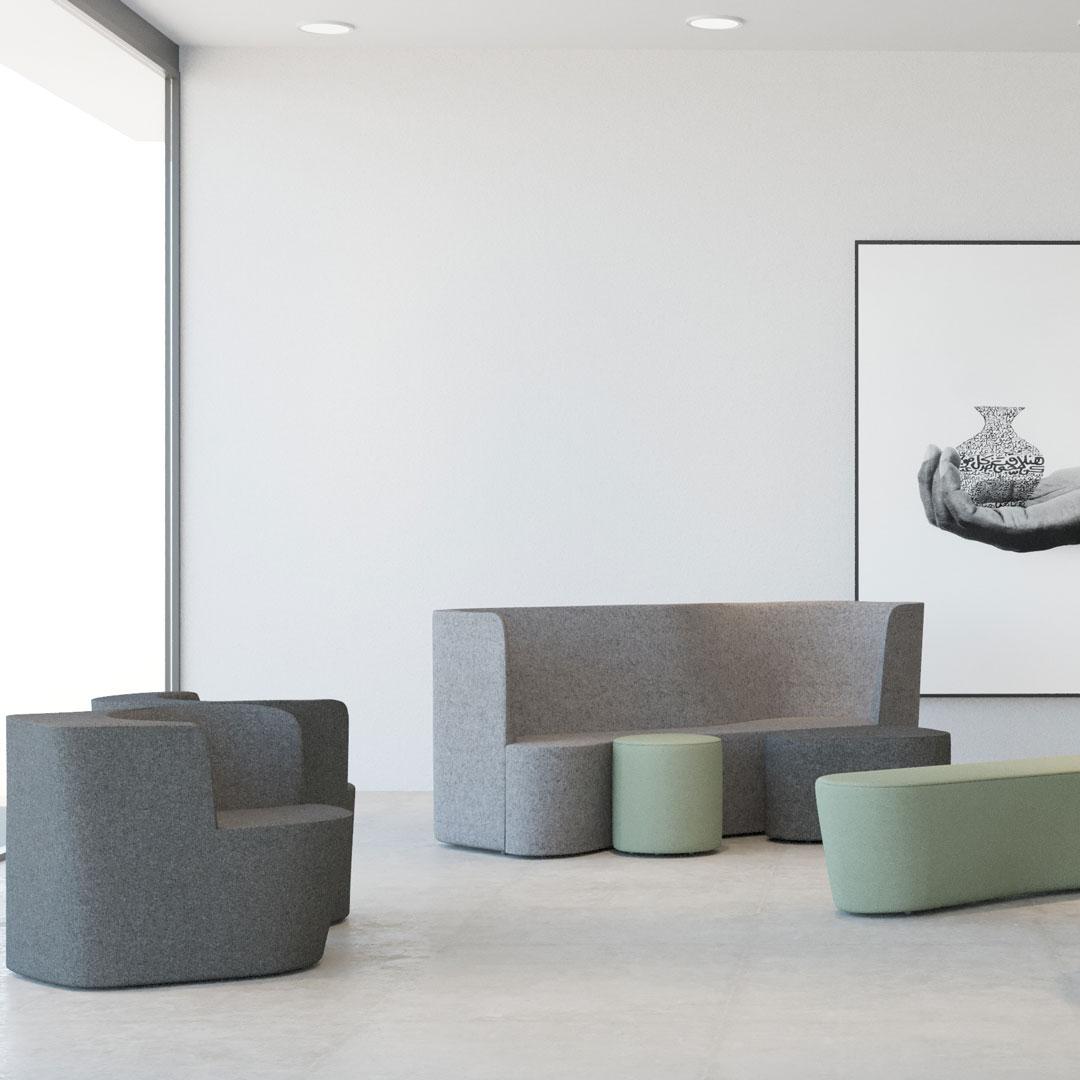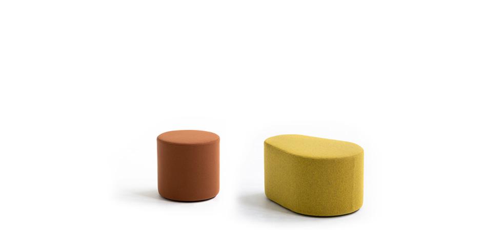 La collezione TABA è composta da otto pezzi: un divano, due poltrone, cinque ottoman. Questi offrono una vasta gamma di possibili usi sia in aree pubbliche che private.