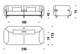 Imbottiture in poliuretano espanso ignifugo, fibra poliestere e chip di memory foam. Struttura in alluminio estruso e piedi in fusione di alluminio verniciato a polveri. Rivestimenti solamente in tessuto con cinture in pelle. La collezione Belt è sfoderabile.