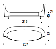 Elementi in poliuretano espanso indeformabile a densità differenziate e fibra poliestere con struttura interna in legno. Piedi in alluminio lucidato avvitati alla struttura. Il cuscino della seduta è in poliuretano espanso indeformabile a densità differenziata e fibra poliestere. I cuscini opzionali dello schienale sono in piuma d’oca. La collezione NewTone non è sfoderabile.