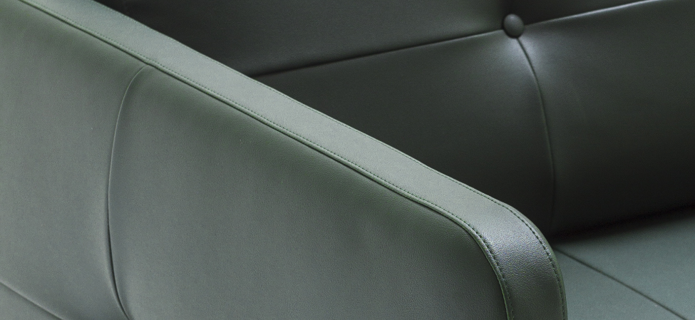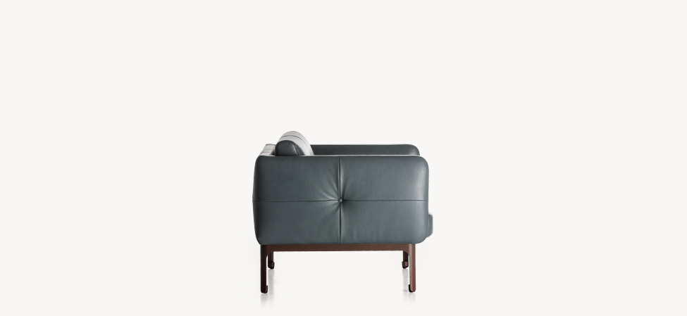 Poliuretano espanso ignifugo a densità differenziate e fibra poliestere con struttura interna in legno. Base in lamiera di acciaio tagliata al laser, sagomata e verniciata a polveri. La collezione Modernista non è sfoderabile.