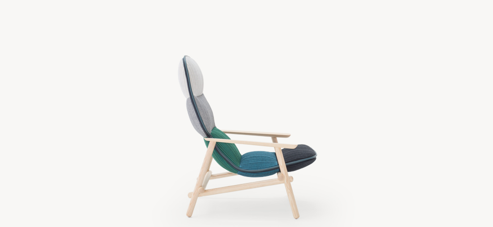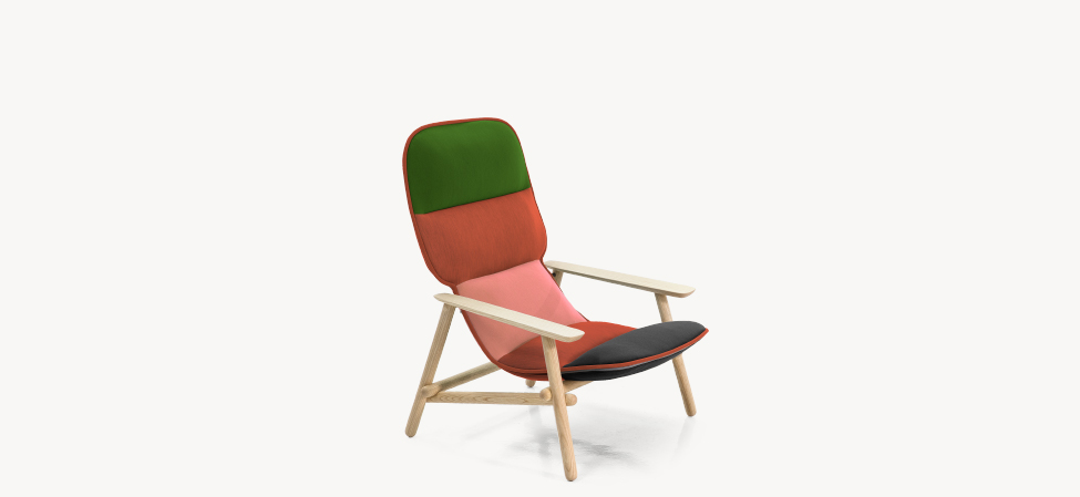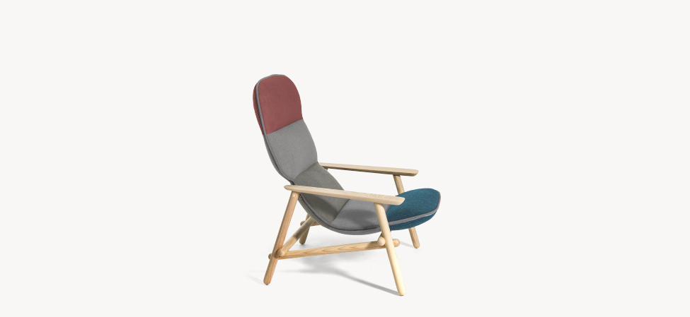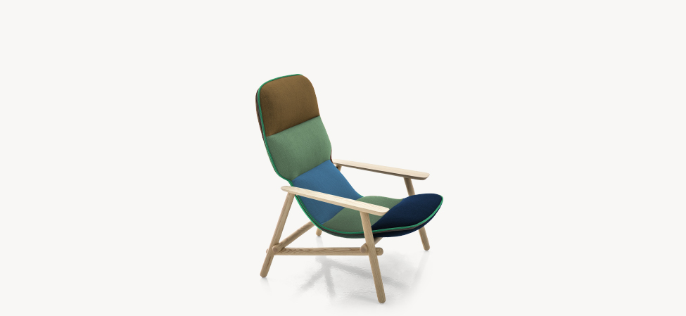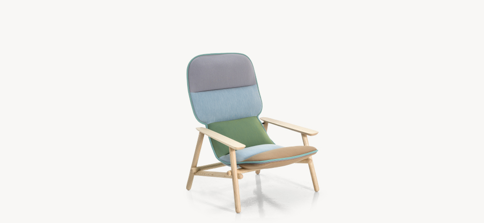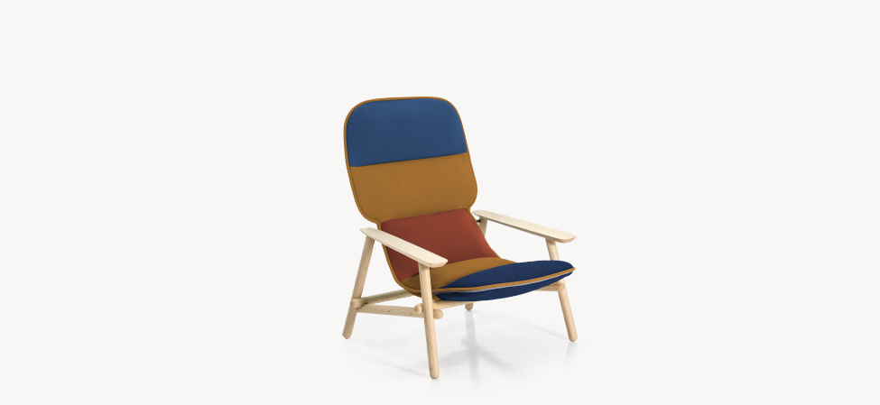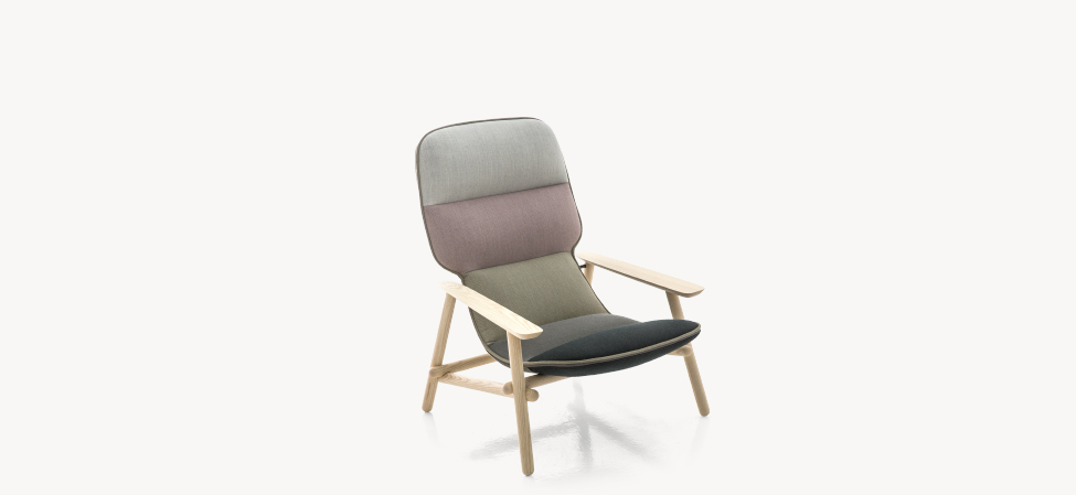 Suggestioni e citazioni dal design scandinavo, dall’idea modernista degli anni 50, dal lavoro dei grandi maestri del design, da Achille Castiglioni di cui, all’inizio del suo percorso, fu assistente. La poltrona accoglie, morbida e accomodante, dimostrando nei fatti una versatilità d’utilizzo che la rende perfetta negli spazi pubblici come negli ambienti domestici.