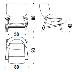 Suggestioni e citazioni dal design scandinavo, dall’idea modernista degli anni 50, dal lavoro dei grandi maestri del design, da Achille Castiglioni di cui, all’inizio del suo percorso, fu assistente. La poltrona accoglie, morbida e accomodante, dimostrando nei fatti una versatilità d’utilizzo che la rende perfetta negli spazi pubblici come negli ambienti domestici.