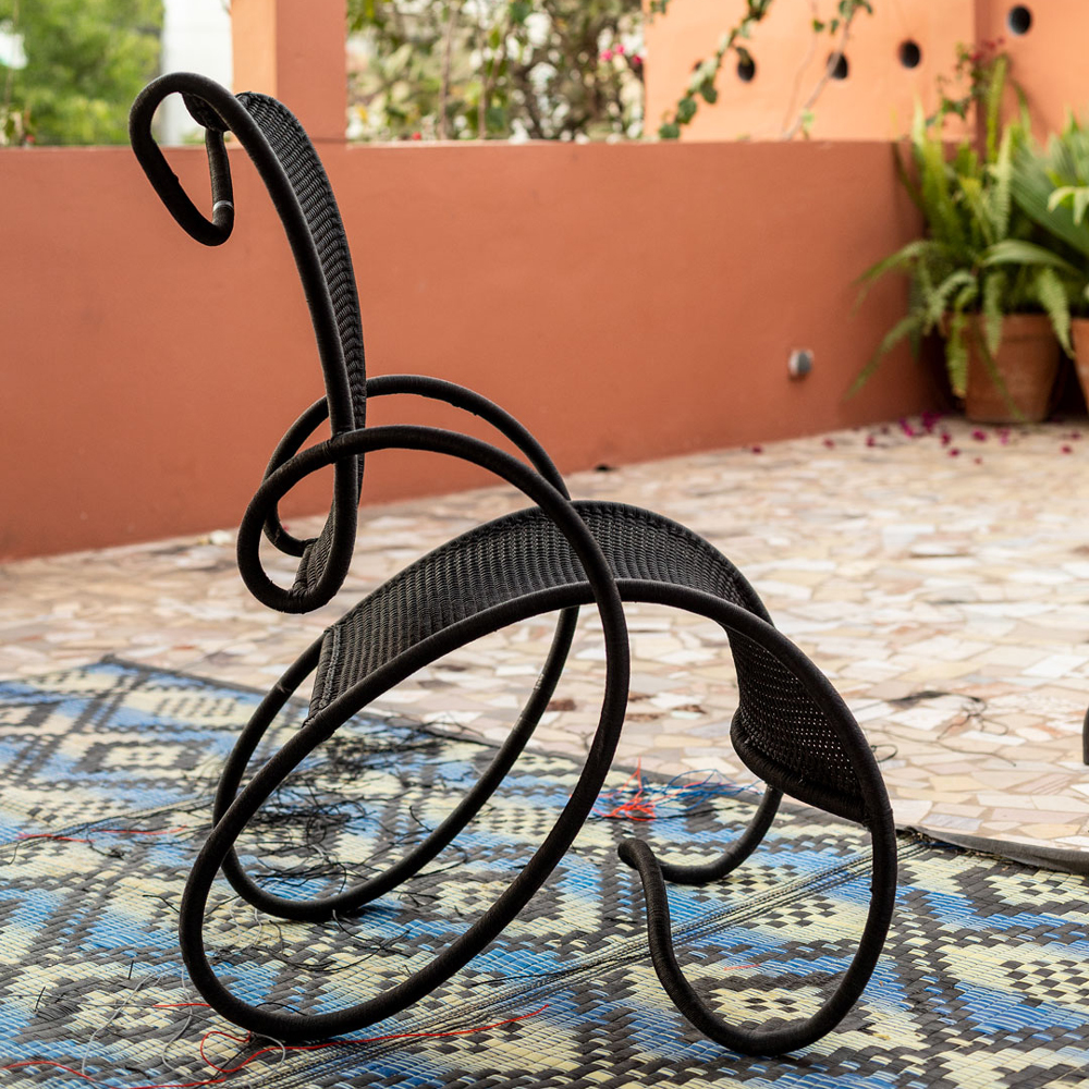 La collezione di sedute è realizzata intrecciando il filo in polietilene utilizzato tradizionalmente in Africa per le reti da pesca. Progetti non-omologati per antonomasia, diversi e originali, lavorati interamente a mano a Dakar, in Senegal, nei laboratori M’Afrique.