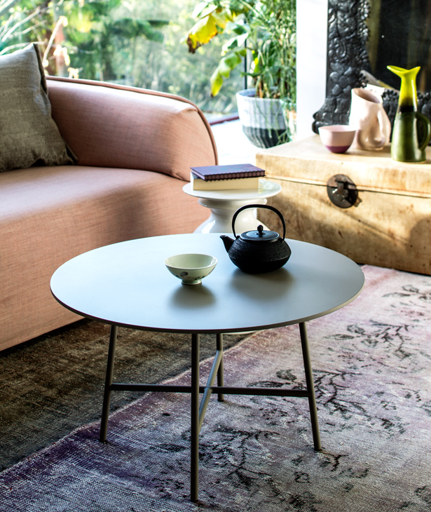 La ricerca parte dal telaio, dallo studio della qualità degli appoggi. è l’ergonomia a determinare la posizione di seduta, i due approcci complementari di concepire la comodità. Sostenere e accogliere. Nella sedia, poltroncina e poltrona la scocca imbottita poggia sulla base; nella poltrona e nella chaise longue il rivestimento è ancorato direttamente al telaio, una sacca che accoglie e seduce l’ospite. Il nome, citazione di un liquore caraibico a base di caffè e rhum, svela la doppia identità, l’allusione al gioco dei contrari. Postura formale e informale, simmetria e asimmetria dei braccioli, linearità e sinuosità del telaio. Ogni funzione è assolta: attesa, riposo, relax.