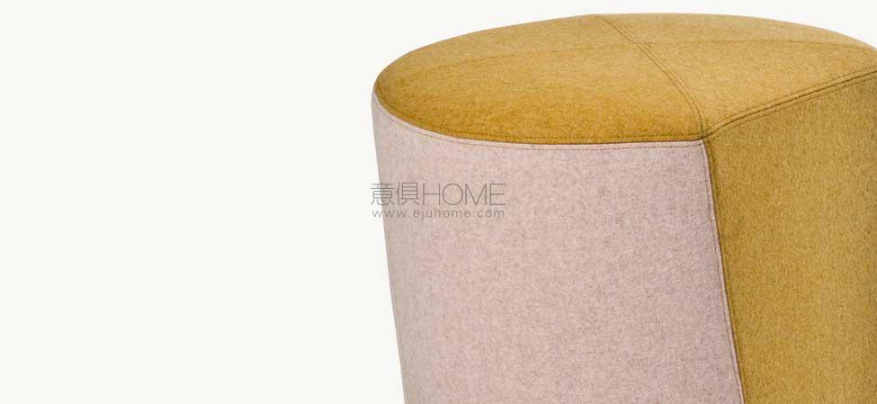 Espanso schiumato a freddo ignifugo con struttura interna in legno per i pouf e con struttura interna in acciaio per le poltroncine. Basamento in acciaio verniciato per la poltroncina girevole (cod. 0V8). è fortemente consigliato il rivestimento in panno di lana o feltro. La collezione Saruyama island non è sfoderabile.