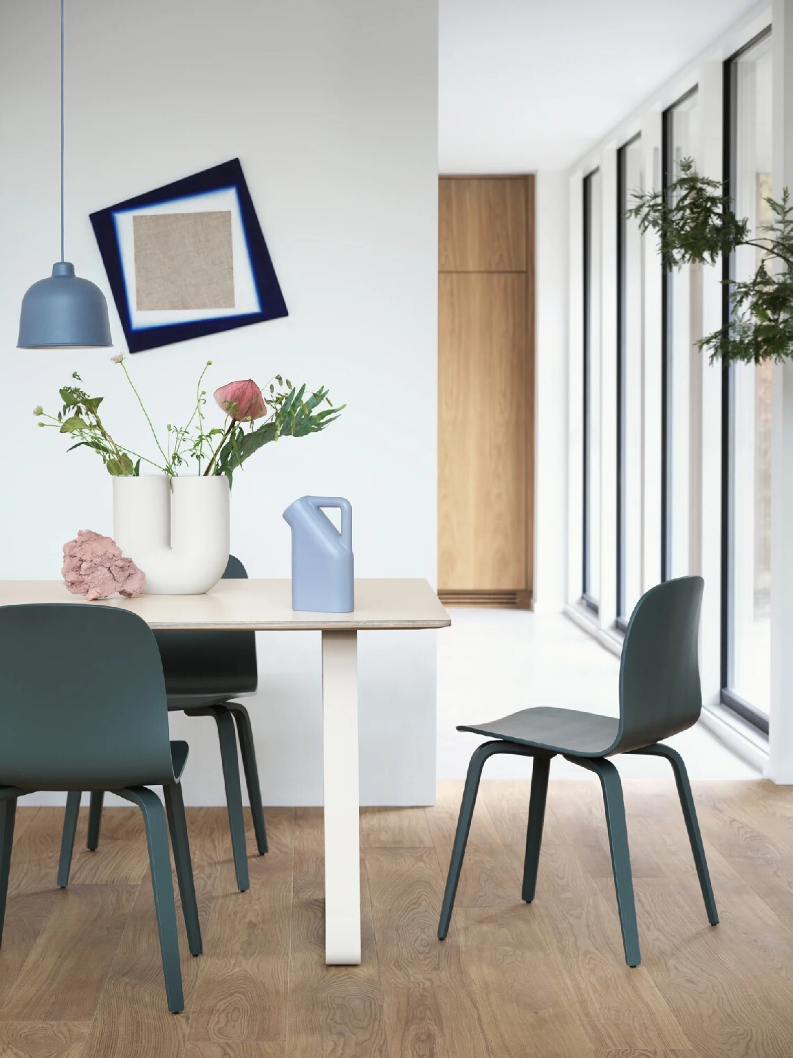 The slim tube legs and form-pressed veneer wood body of the Visu Chair create quiet lines while making it easily stackable, fit for conferences, office spaces, restaurants or home dining areas.