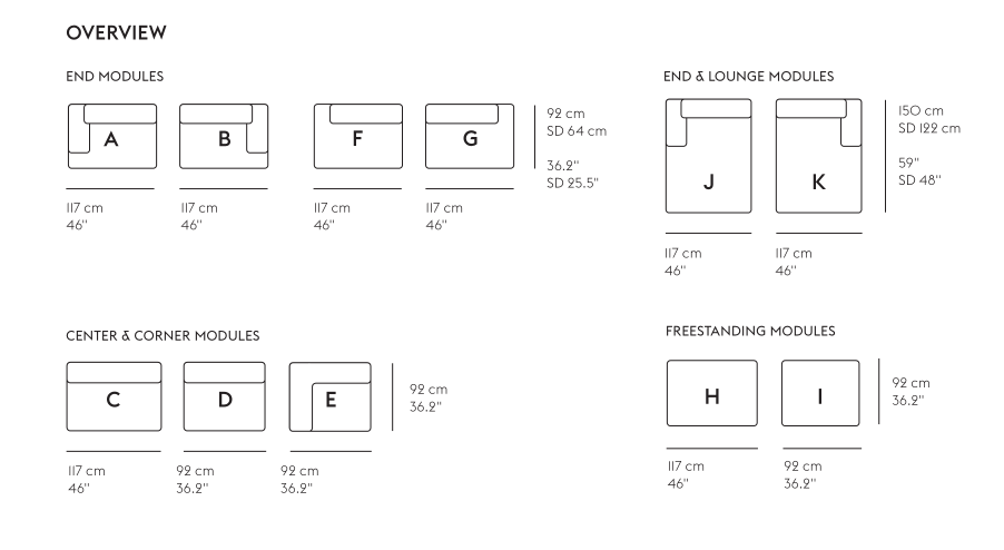The Connect Modular Sofa brings a modern perspective to the typology, allowing for its user to customize the sofa for their exact spatial and aesthetic needs with 11 different modules. Designed with long, elegant lines, the Connect Modular Sofa's details of its small feet underneath for a hovering, light sentiment and pointy corners allows for the design to bring character to any space, all while complementing and enhancing its surroundings. Use the Connect Modular Sofa for a deep, modern comfort in any home, workplace, lounge area or hospitality setting.