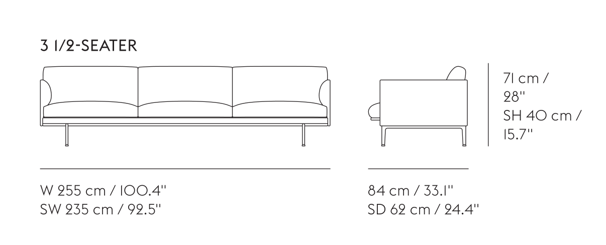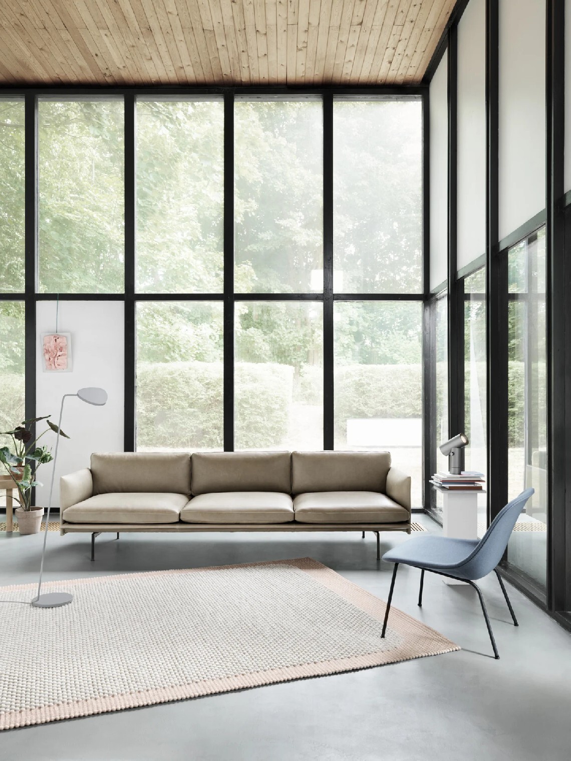The Outline Sofa adds new perspectives to the classic Scandinavian design sofas of the 1960's, marrying the ideals of simplicity and function into one. With the design taking its name from its strong outline of a sofa, the Outline Series is clean and elegant on the outside with a deep seat and soft cushioning on its inside. The Outline Series has an expression that is at once elegant yet timeless, elevated by its lines referencing architectural shapes alongside its curved armrests, giving the design a distinct appearance across various sizes and variants. The Outline Series also includes Studio versions of the Sofa and Chair, being compact versions with slimmed-down proportions for smaller spaces within the home, hotel rooms, work settings and more. The Outline Studio Sofa and Chair have a smaller depth of 76 cm / 29.9”.