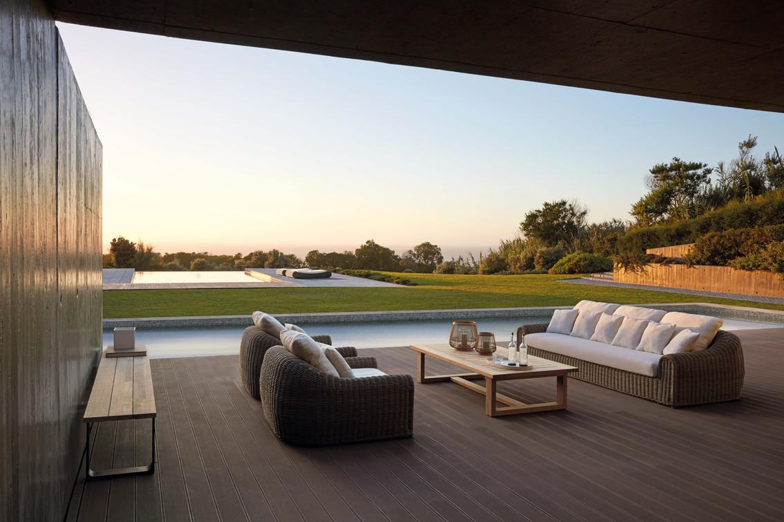 The River seating collection owes its name and inspiration to the meandering flow of a watercourse. Through its elegant curves and shapes, the sofas and sunbeds mimic natural surroundings, fostering a harmonious, relaxing space for connection. Become one with nature and experience its calming effects in this low-to-the-ground design with extra deep seating.