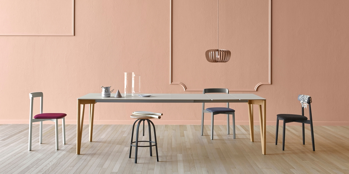 Decapo is an extendable or fixed dining table, elegant, with a minimalist and a little Eastern style. It is characterized by the outline of the legs, of a pleasant and narrow ‘V’ shape. Also available with the new top in Fenix.