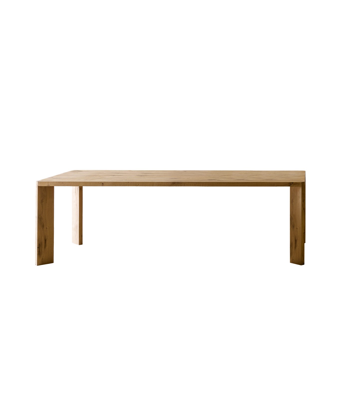 Manero is a contemporary looking table yet has a strong association with traditional fine quality joinery. Its primitive character focuses our attention on the expressive nature of the wood. An assertive table with no frills.