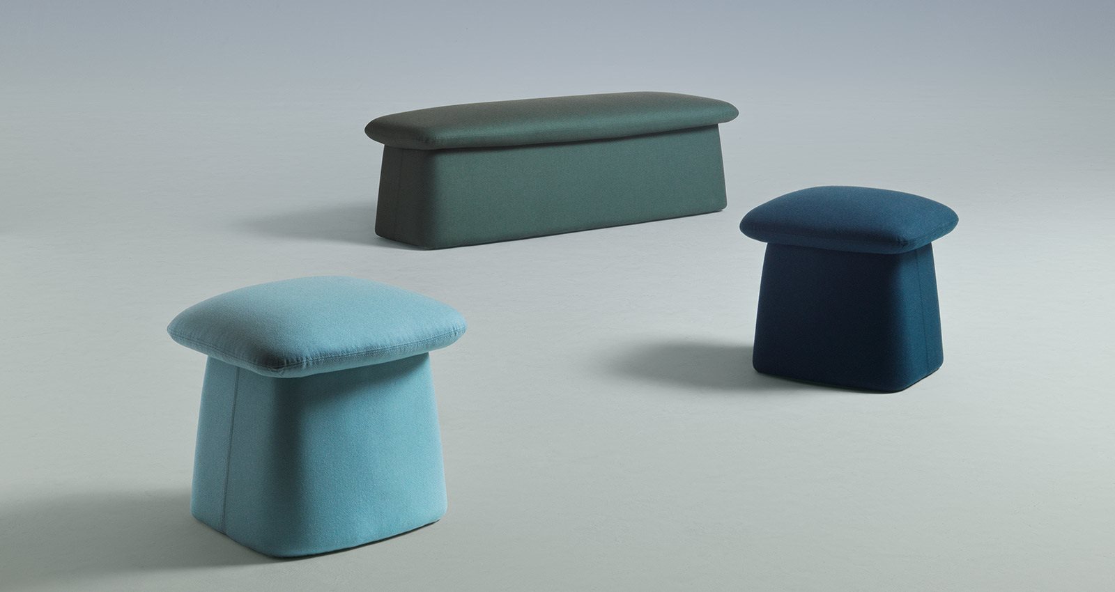 BULE’ with its soft, curvy and appealing shapes injects fresh energy and a touch of personality to all home settings. A symbol of hospitality, the new footstool draws inspirations from organic, living and changing nature. A solution which can be adapted to suit both living areas and bedrooms where it can be employed as a practical bedside rug. BULE’ is available in a vast range of original and creative fabrics, so it can be personalised and made truly unique.