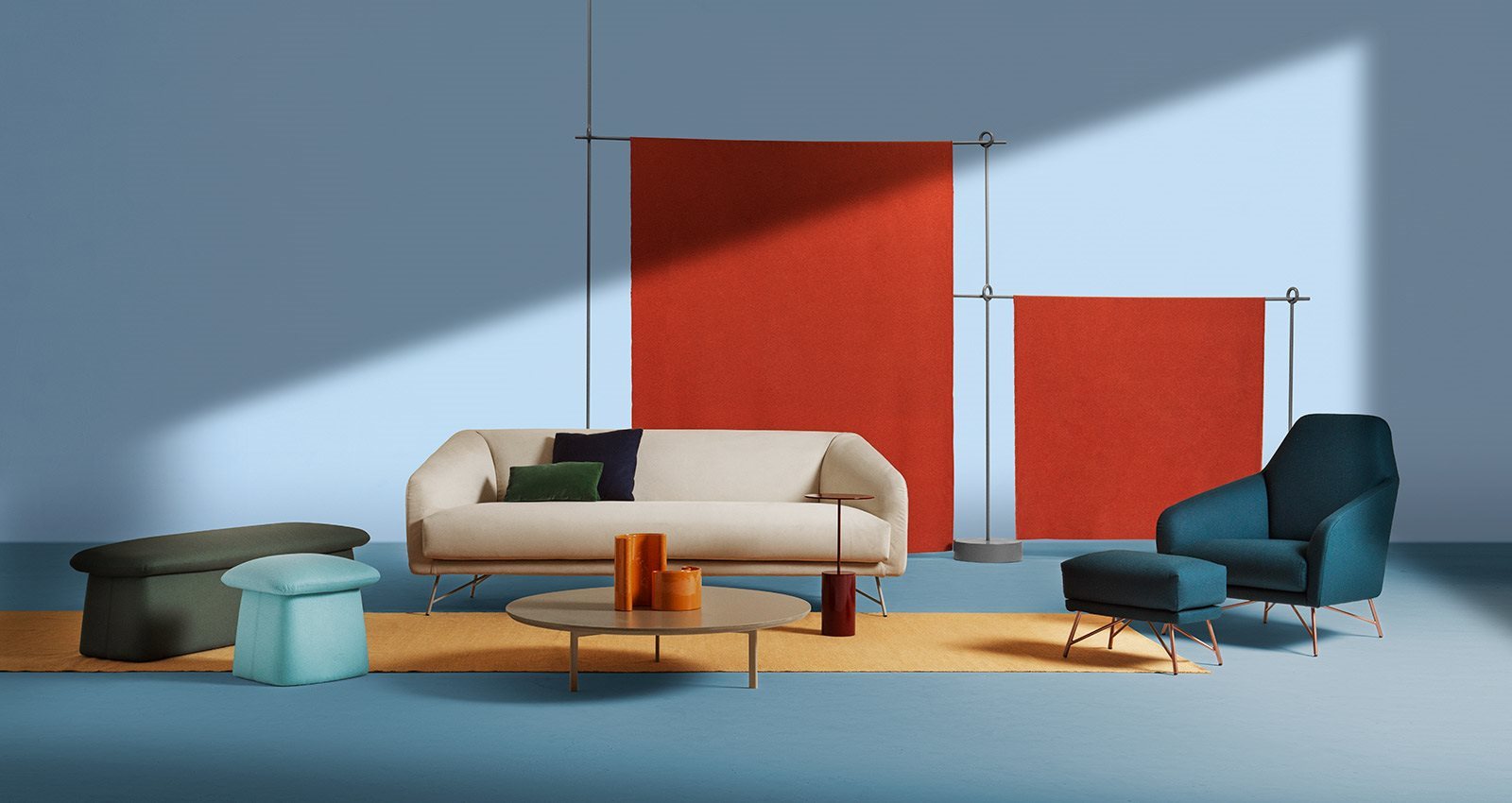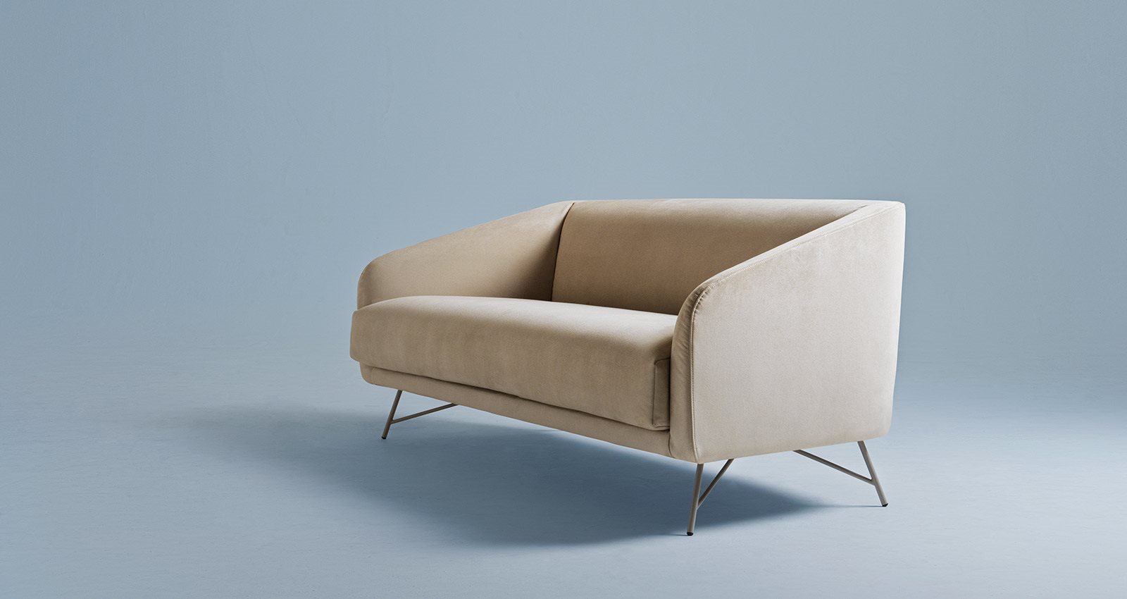 The Twiggy sofa offers welcoming comfort with Fifties influences. Its shapes were inspired by the past but made for the present to immediately draw you in. The harmonious proportions, soft, yielding shapes and light weight frame express the joyful soul of this collection of upholstered pieces.