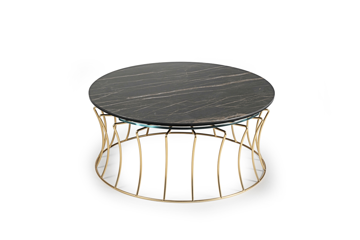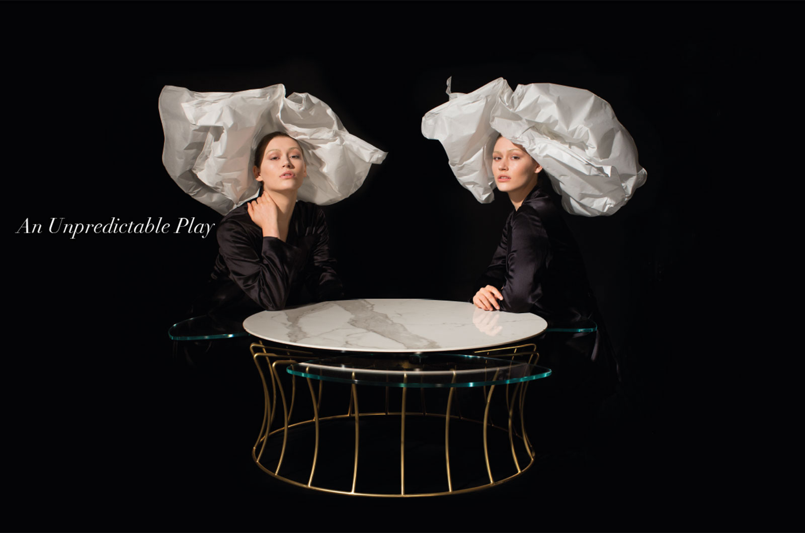 TAVOLINO ESTENSIBILE CON PIANI IN CERAMICA E CRISTALLO, BASE IN ACCIAIO VERNICIATO O GALVANIZZATO. DOTATO DI UN INNOVATIVO MECCANISMO CHE, ATTRAVERSO LA SOLA ROTAZIONE DEL PIANO SUPERIORE, PERMETTE AI TRE PIANETTI SOTTOSTANTI DI APRIRSI. DISPONIBILE ANCHE SENZA MECCANISMO.