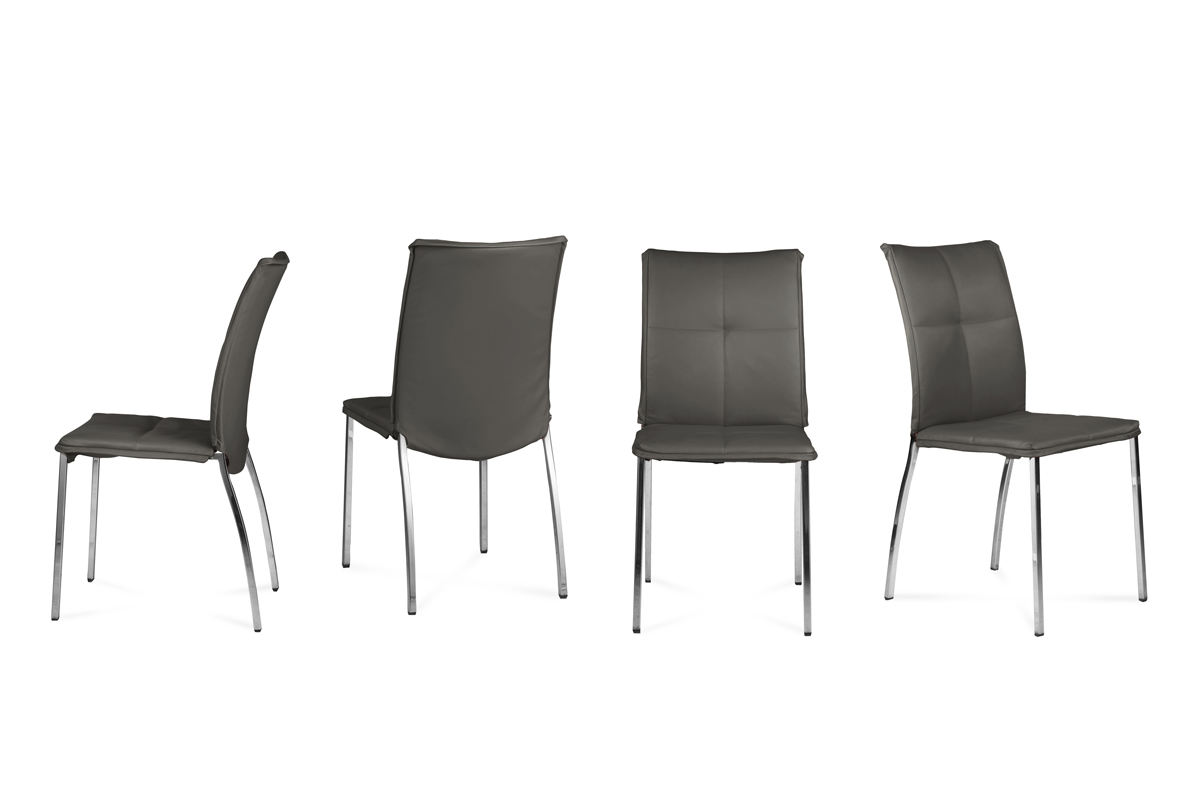 SEDIA IMBOTTITA CON STRUTTURA IN ACCIAIO CROMATO O VERNICIATO. SEDILE E SCHIENALE ERGONOMICI, CON RIVESTIMENTO IN PELLE. DISPONIBILE NELLA VERSIONE CON SCHIENALE REGOLABILE A MOLLA LIBERA “M” PER MODULARE CON MAGGIOR PRECISIONE LA GEOMETRIA DELLA SEDUTA.