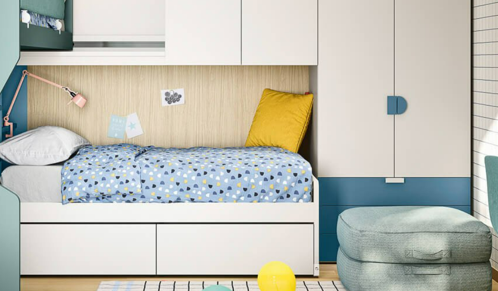 Sospeso o a terra, il comodino Base può avere uno, due, tre cassetti o un cassettone. E c’è anche nella versione con anta Soft imbottita!