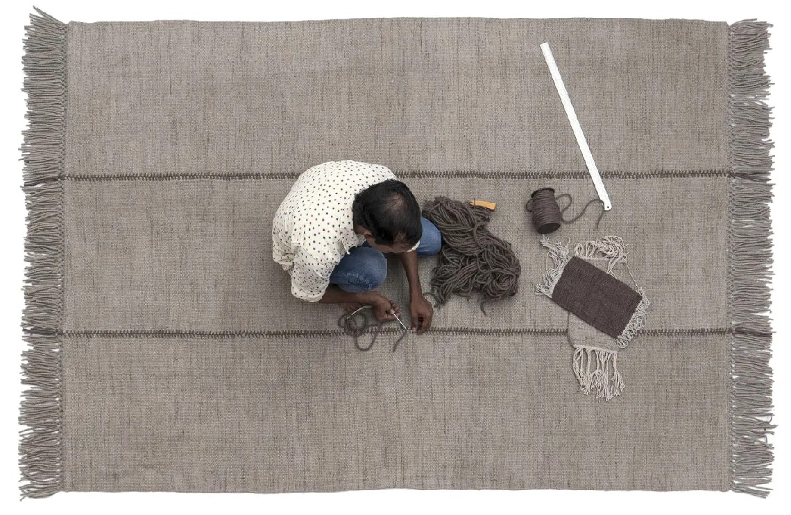 Create your own rug: choosing between two sizes, four colours, and four different finishes. You can contrast seams, add different types of fringes or opt for colourful stitches. Infinite results are possible; each detail makes a difference, ensuring your rug is unique.