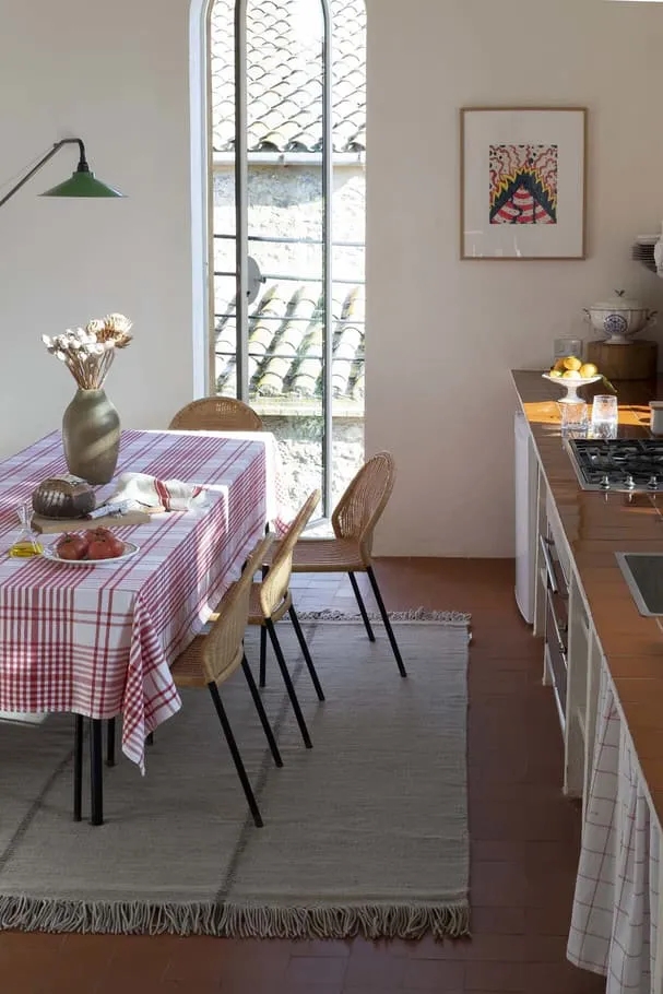 An artisanal flat-weave made in India, the Mía rug is a Dhurrie created by joining three pieces, individually dyed, to obtain a worn, lived-in effect.